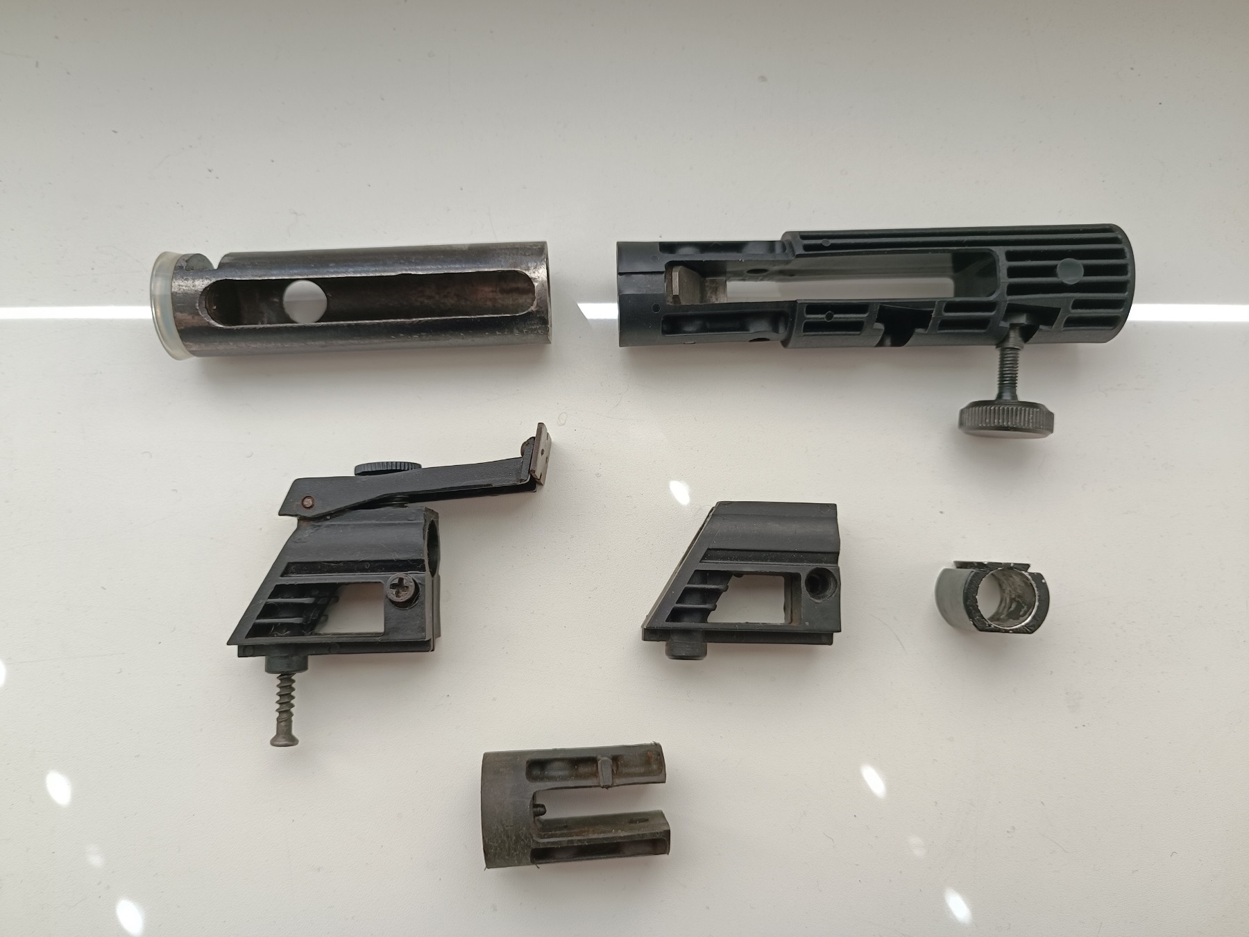 Муфта (пластик) в сборе (храповик, штифт, пружина, гайка приклада, винт приклада) - 20 рублей