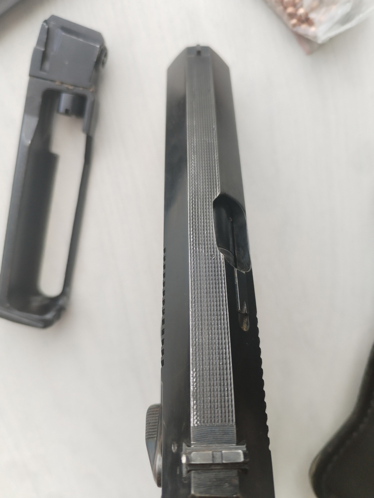 Продается пневматический пистолет мр 654 ПММ, редкая серия для коллекционеров. На одних номерах, установлена круглая гайка и голова магазина с зацепом, имитатор выбрасывателя. В комплекте кобура, шомпол, шарики, баллончик. Не травит, заменены РТИ. Цена комплекта 1500 р. Так же возможен обмен, пишите в личку. Для самых быстрых сделаю скидку.