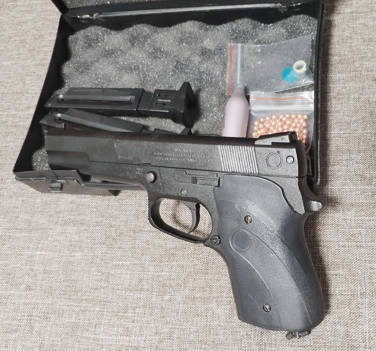 -Аникс А 101м, не травит, заменены РТИ, в комплекте шары, баллончик, мишеньки, цена 275 р.