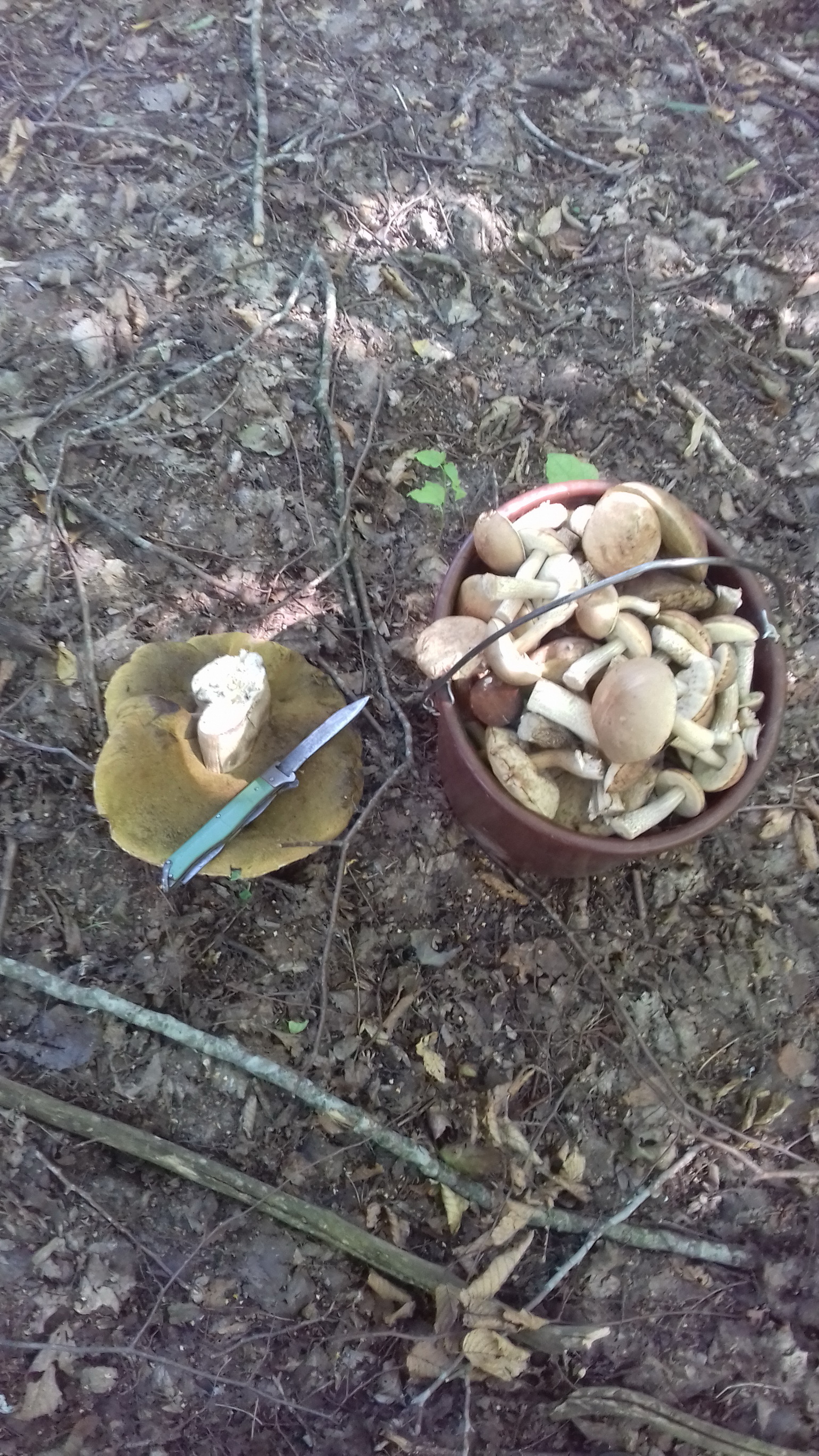 Даааа, грибочков в этом месяце предостаточно. Давно так не отрывался, в пятницу возвращался из командировки, решил остановиться и пробежаться по грибам, благо всё необходимое валялось в багажнике. Притормозил у небольшого лесочка, переоделся и рванул на поиски. Если честно, сразу даже разочаровался, на прилегающей к трассе территории ничего "зачетного" обнаружено не было, встречались единичные сыроежки, маслята, подберезовики. Как понимаете настроение от этих грибов, точнее от их количества было не совсем радостным. Начал подумывать об "отступлении", то есть о перемещении в другое место, но что то удержало от данного шага. Пройдя по лесу примерно два, два с половиной километра наткнулся на молодняк елей, чуть меньше колена высотой, а там мечта грибника, по крайнее мере мне так показалось. Столько грибов в одном месте я до сих пор не встречал, у меня глаза на лоб полезли от увиденной картины. К сожалению сразу запечатлеть на фото увиденное как то не додумался, потом, уже в процессе сборки, сделал несколько фоток мобильником на память. Но увы, все было не так радужно как хотелось бы мне, 90% грибов найденных мною были по точены червями и отбракованы. Так что, что бы набрать два ветра, мне пришлось немного побегать по прилегающим территориям. Но все равно, результатом "тихой охоты", я остался доволен. Почаще бы так!