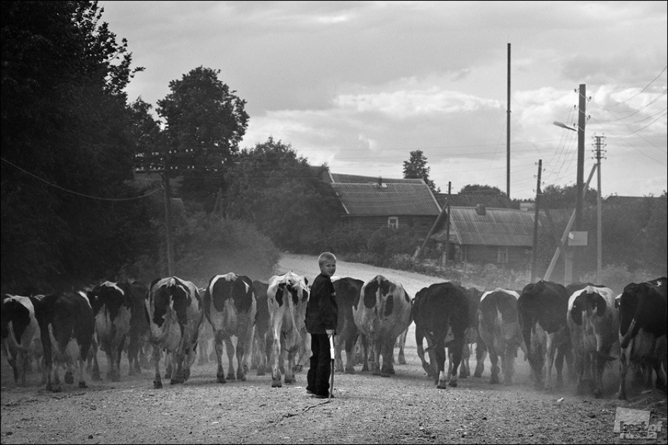 Немного свеженьких воспоминаний. Я тоже когда-то так у бабули коров гнал по дворам.