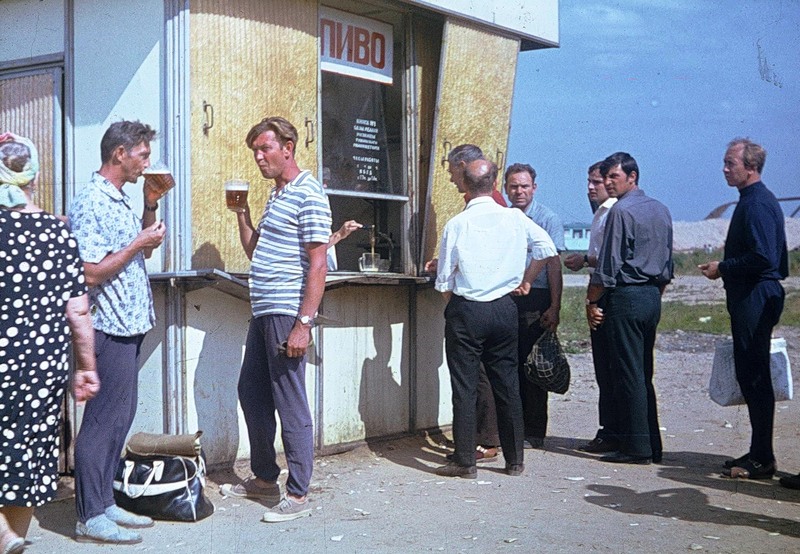Ну давайте тогда маленько за пиво поговорим. Я вот тут пару фото нашел. Помню как батя еще молодым с соседом так пиво пили. Именно из трехлитровика... Мне всегда 0.33 кваса брал, ну и по закону нашему мужскому, моя всегда пена с пива была! :-) Черно-белое фото, где очередь, сразу узнал. Это два киоска около магазина и кинотеатра Современник, куда меня папа водил на фильм "Полет навигатора"! Ну и подборка этикеток, некоторые из которых я помню именно из СССР, т.е. когда мне лет 8 было!