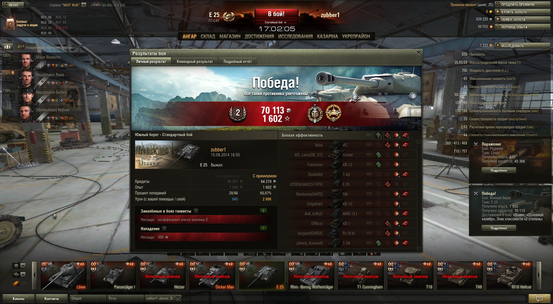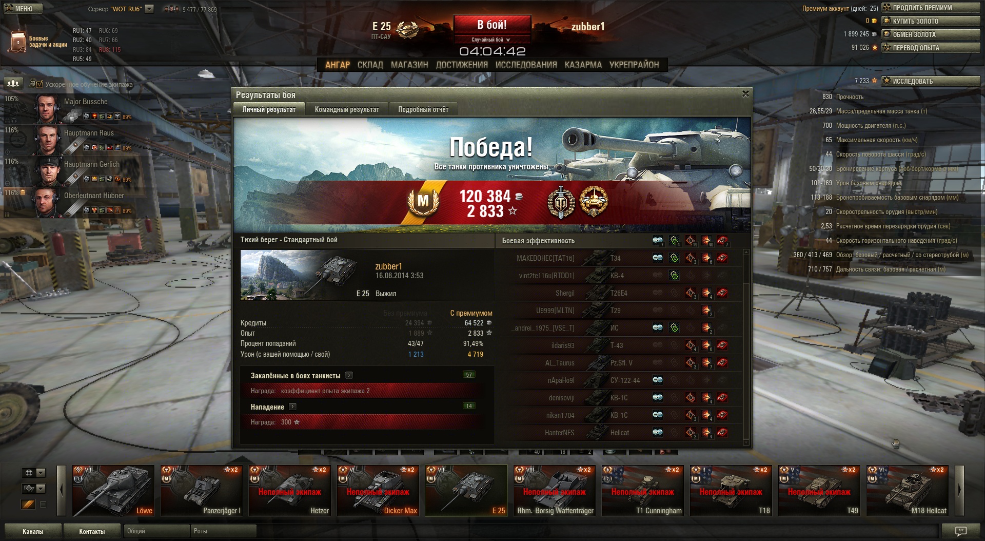 Пришлось срочно "нафармить" недостающих полтора мильёна.. "Лева" и Е-25. Случались иногда и выдающиеся бои-заработки. :-) :-)