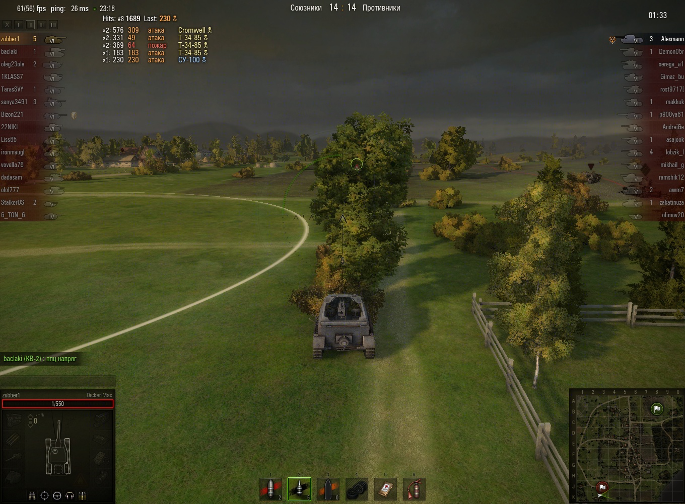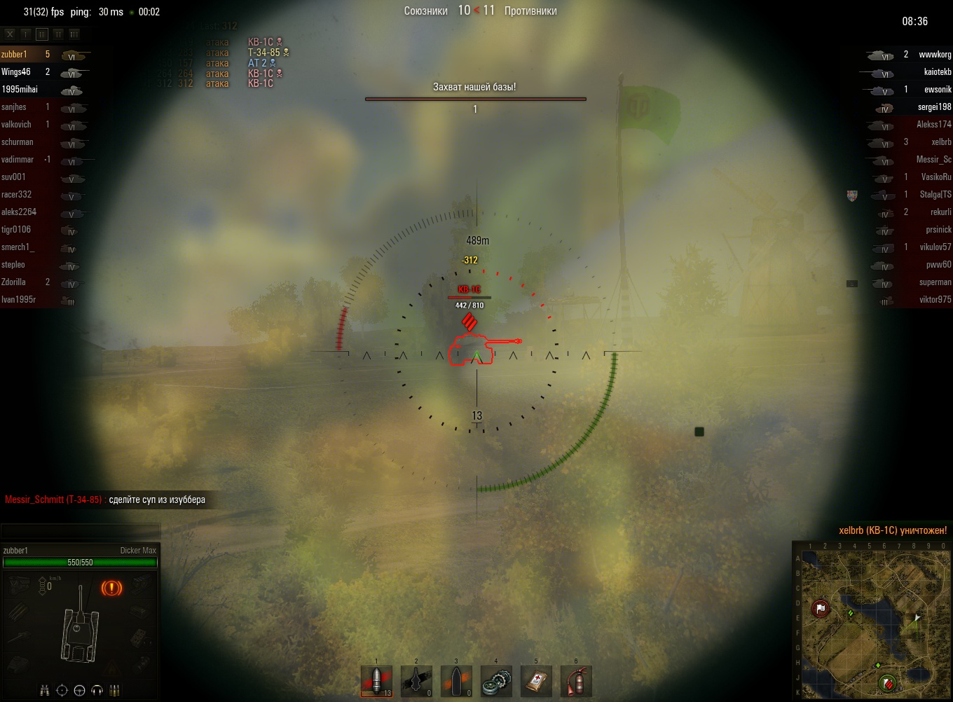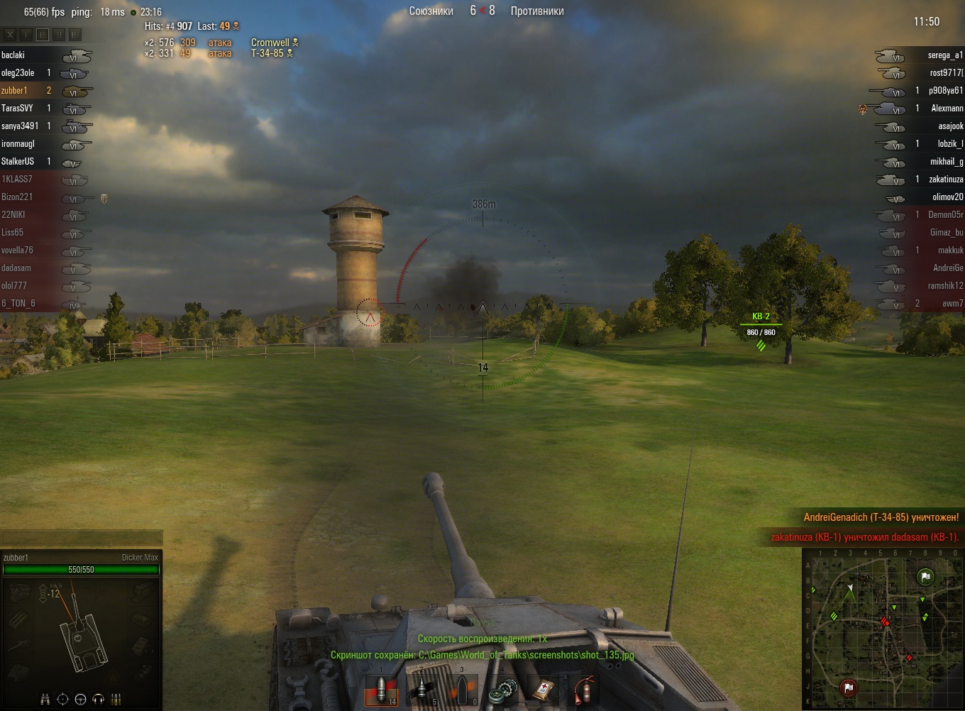 Эх, жаль прошлые реплеи не показывает.. Там один КВ-1 так ругалсо погибая под градом пулек летящих из ниоткуда.. 8 пробитий, и штук 10 рикошетов.. Так и не вкурил где нивидимка притаился...