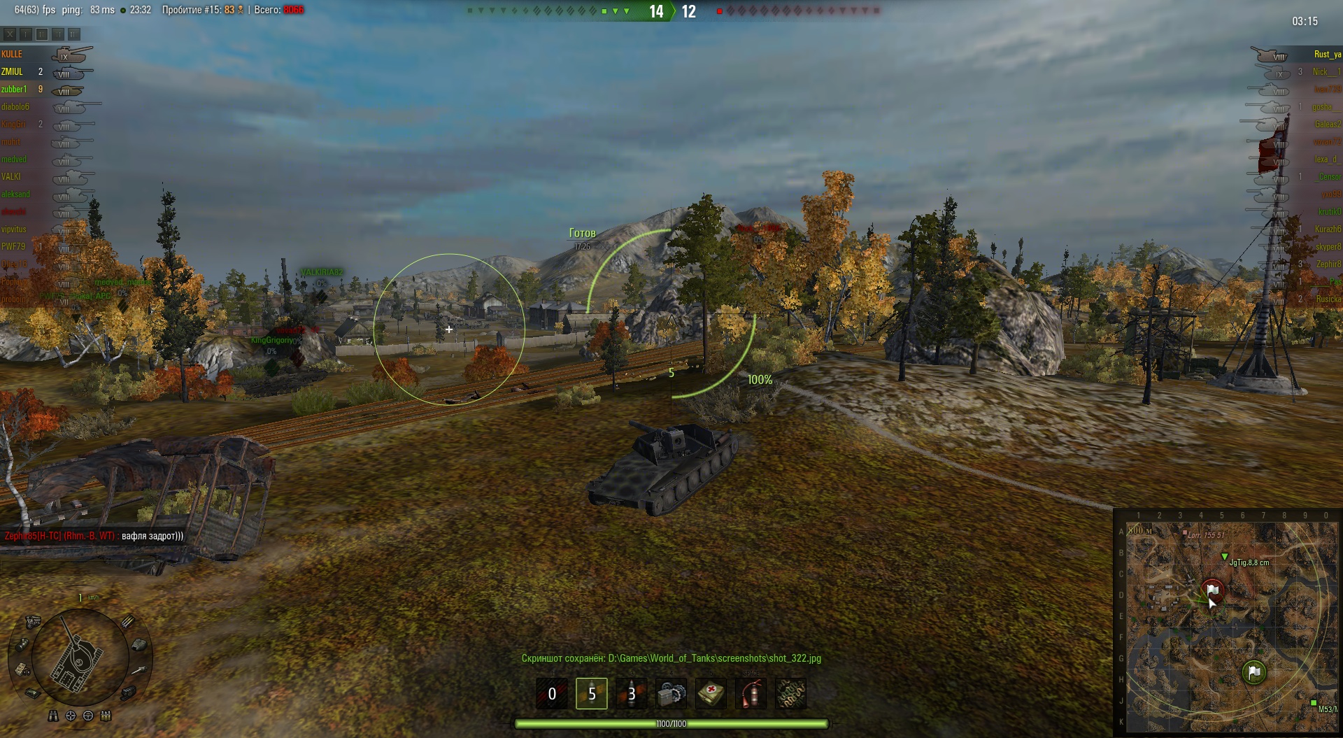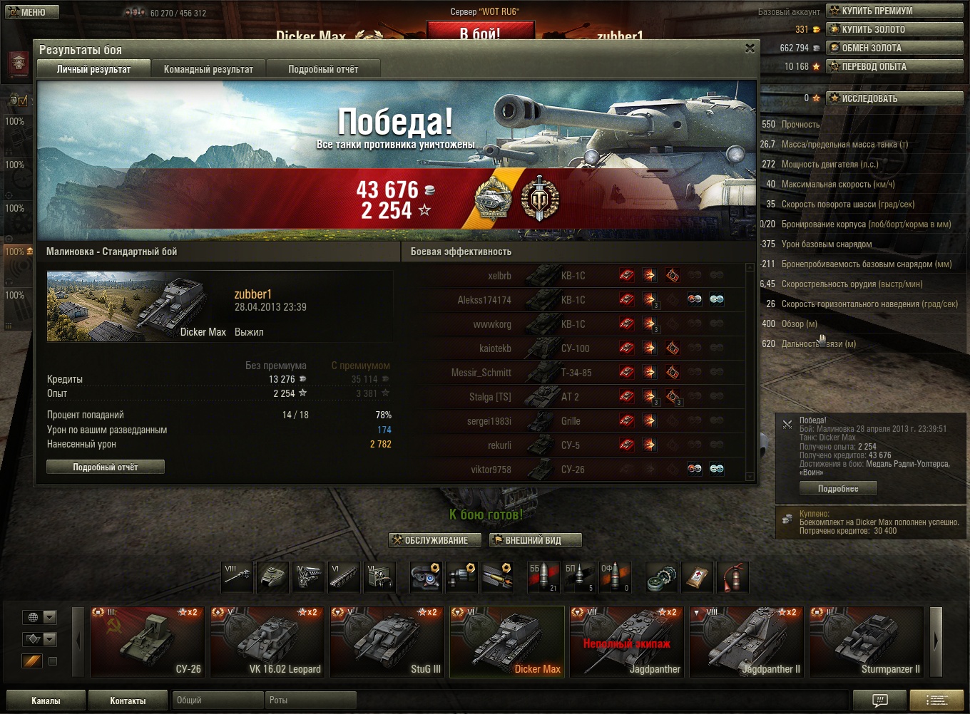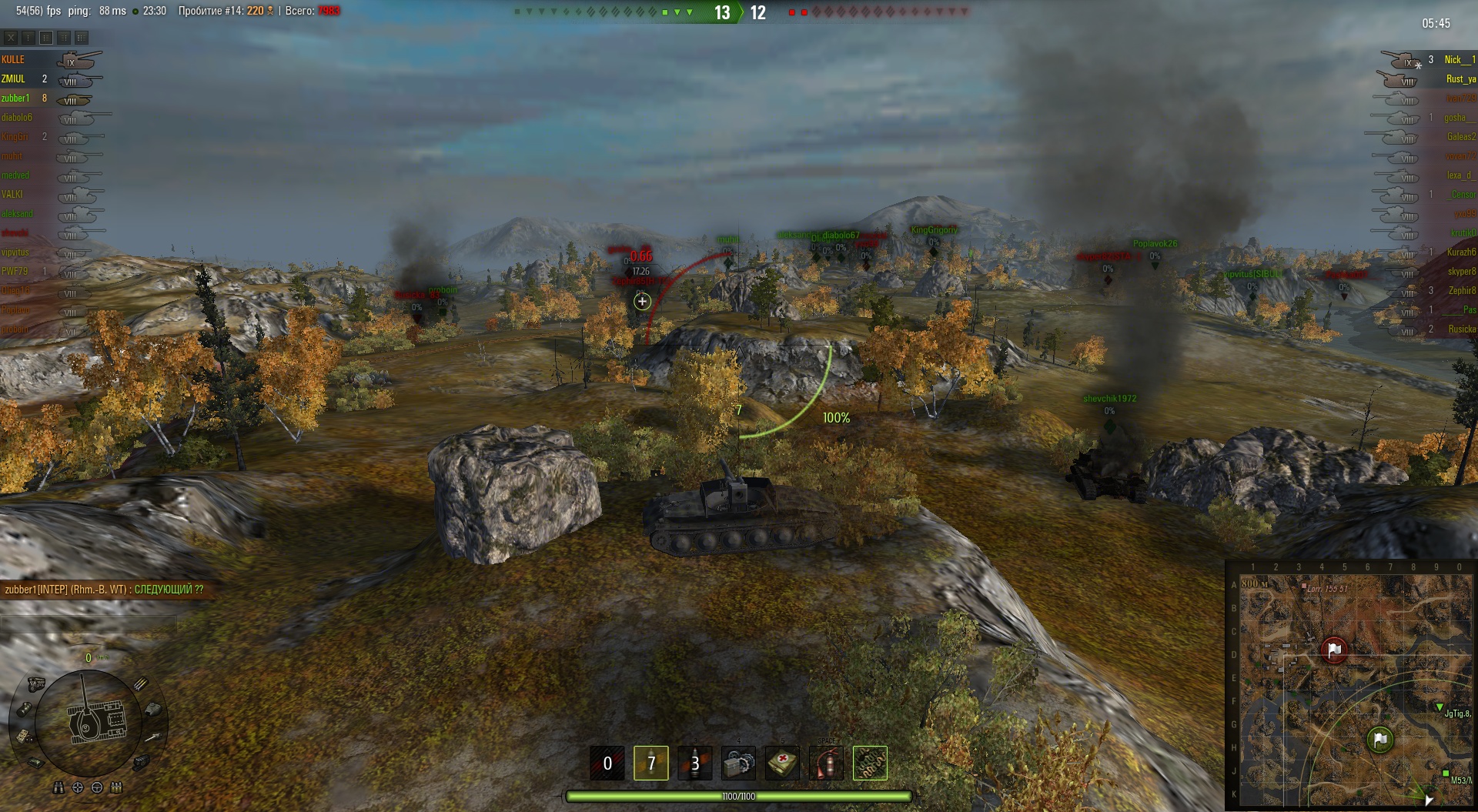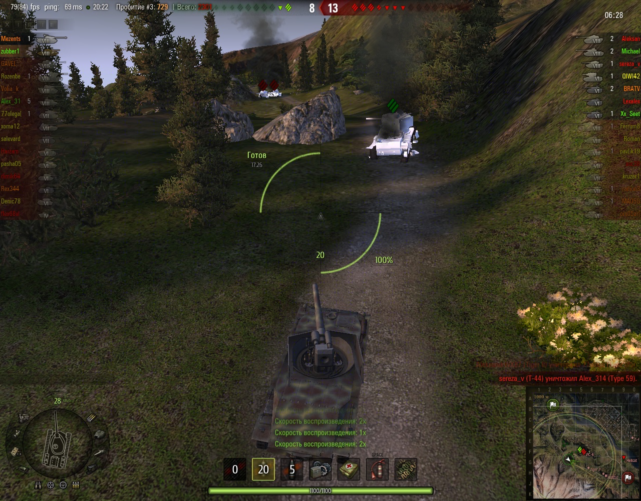 Эх, жаль прошлые реплеи не показывает.. Там один КВ-1 так ругалсо погибая под градом пулек летящих из ниоткуда.. 8 пробитий, и штук 10 рикошетов.. Так и не вкурил где нивидимка притаился...
