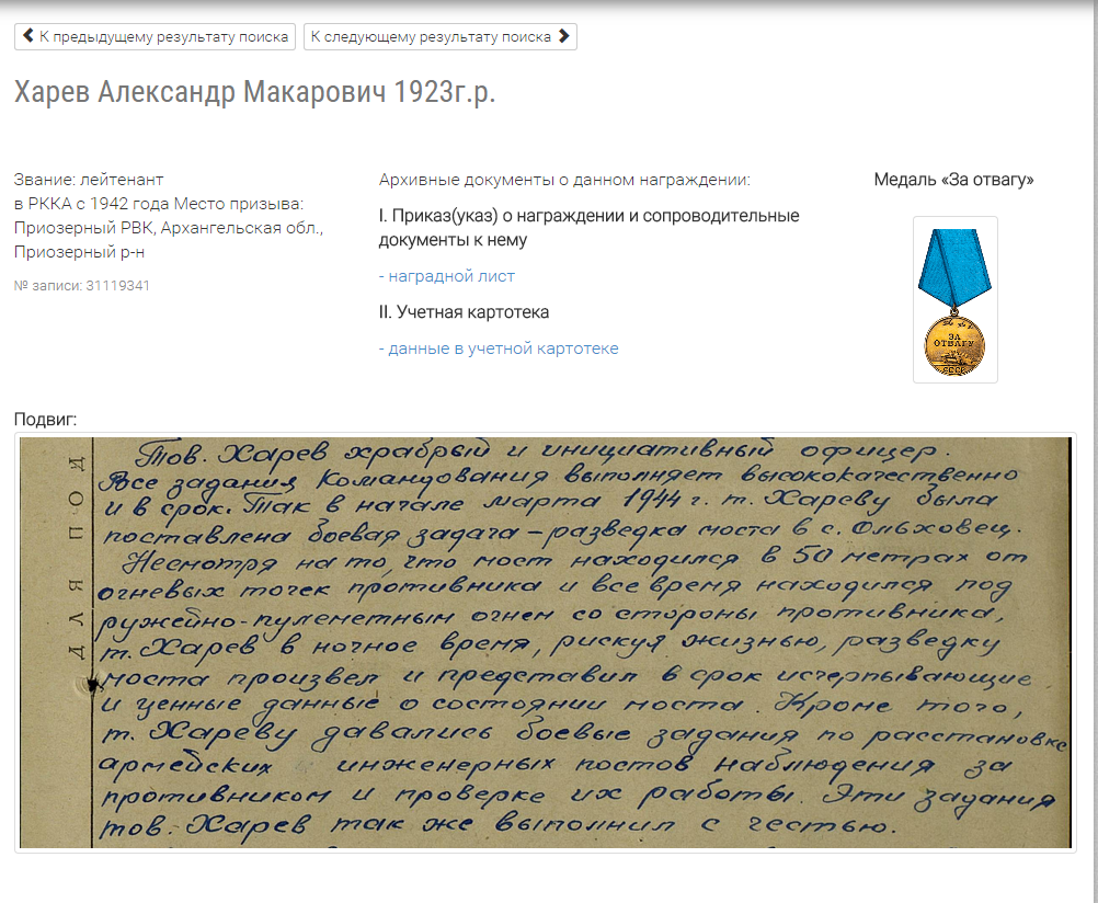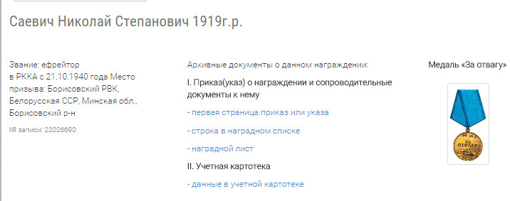 Есть данные о моем дедушке. По крайней мере год рождения, место призыва, и медаль "за отвагу" - совпадают.
