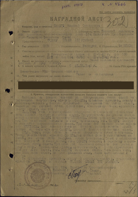 Дословная распечатка наградного листка.