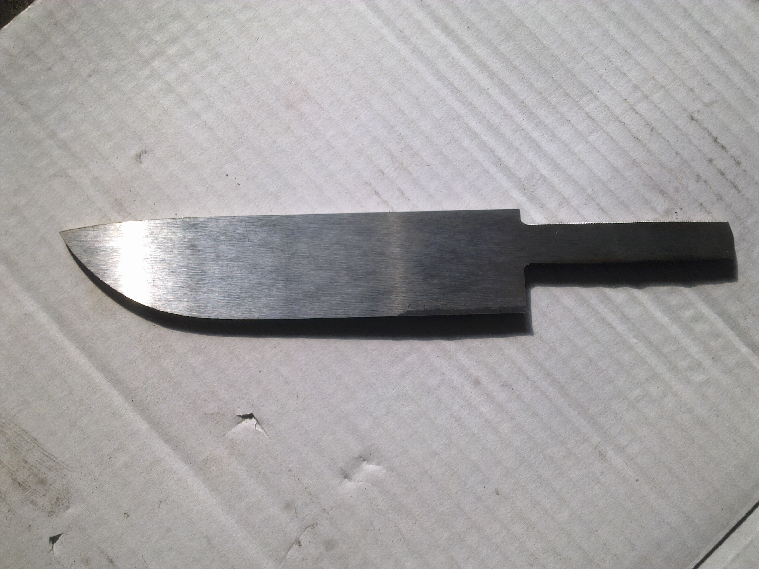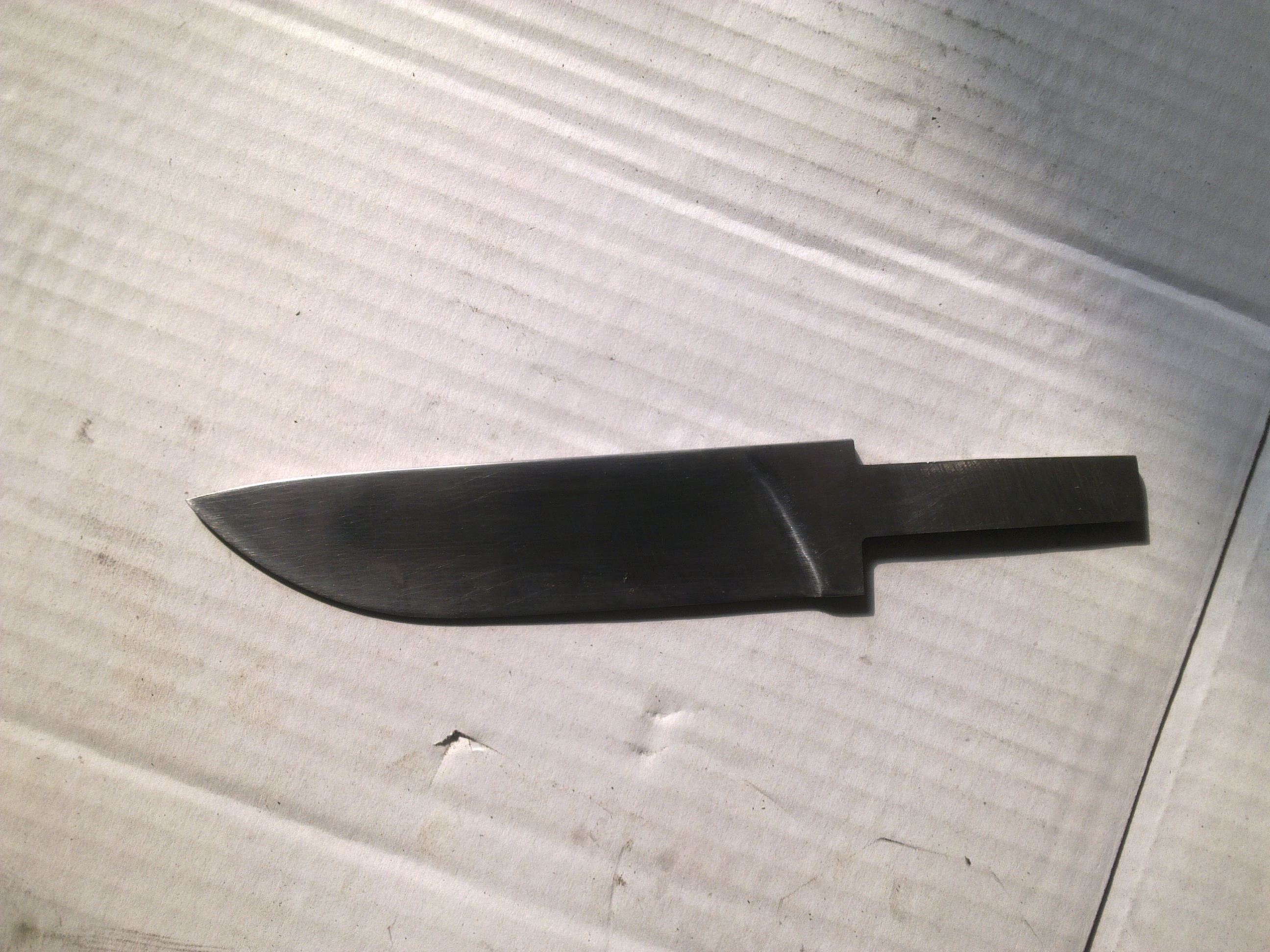 Просили сделать ещё типа такого же фуллтангжика, но маловато оказалось по ширине. Получилось пару вот таких клиночков. Не знаю, что за быстрорез там, в принципе по маркировкам их великое множество, но рисунок очень своеобразный. Прям как кованный.