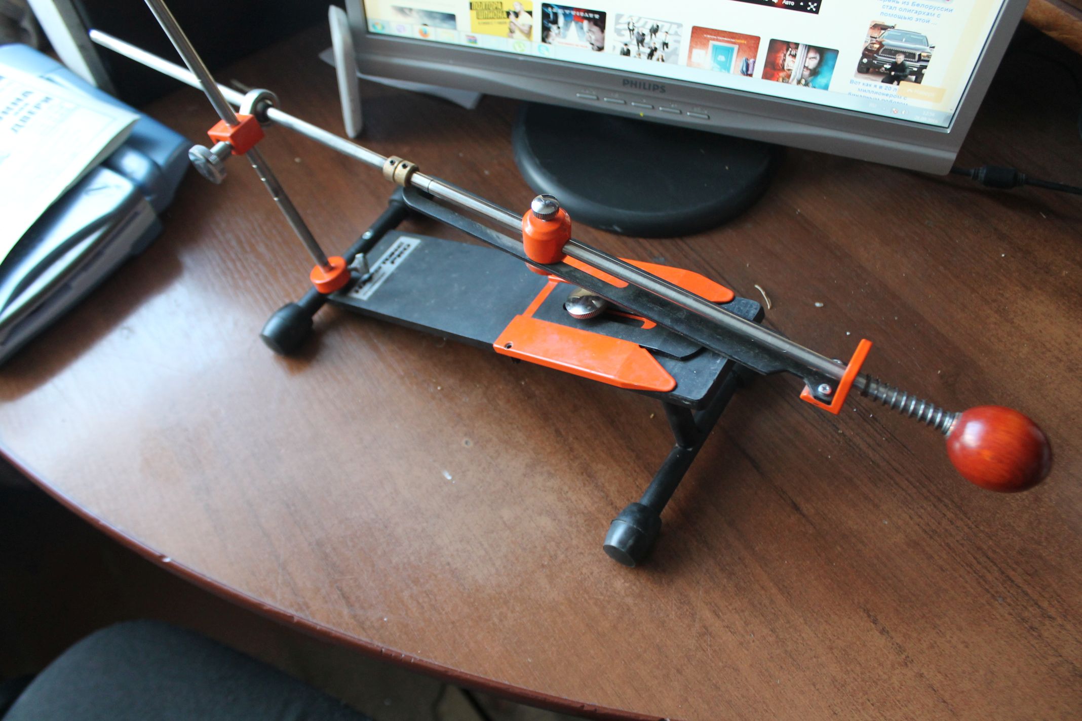 Камни карбид кремния Гриндерман. Но т.к. являюсь поклонником ручной заточки на водниках, хочу попробовать еще такую приспособу для удержания угла