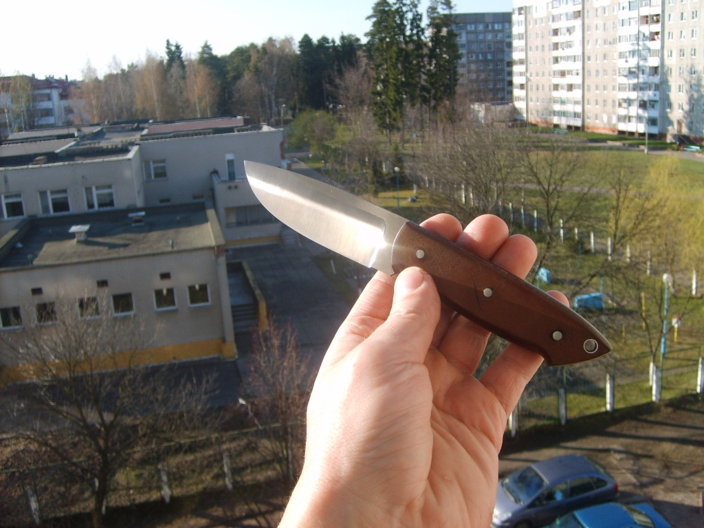 Одному хорошему дяденьке на 55-ти летие аппаратик собрал. Надеюсь понравится. 95х18 клинок и морёный дуб с тунгом на рукоятку.