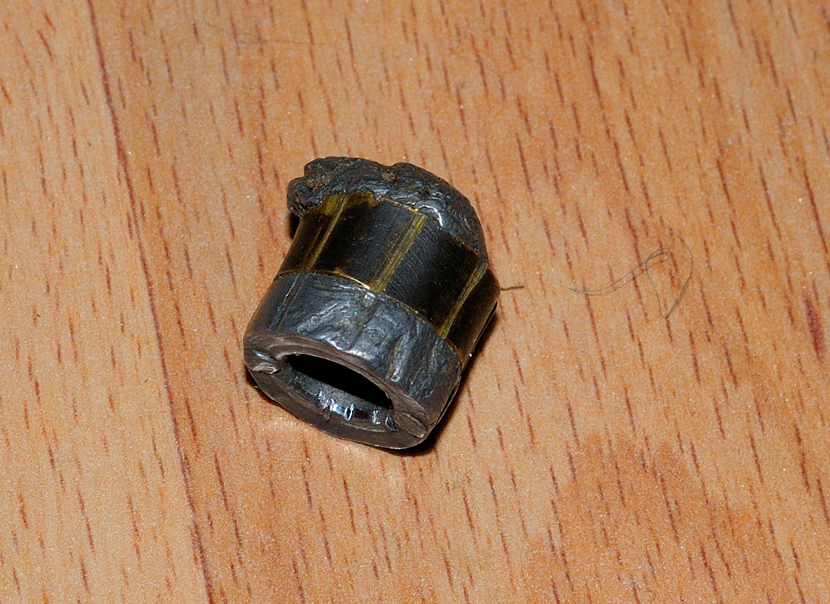 На другом снимке - пуля извлеченная из сохатого ( бык, 7 отростков на рогах, бит по месту единственным выстрелом в лопатку. Дистанция 140 шагов при росте 185см ).