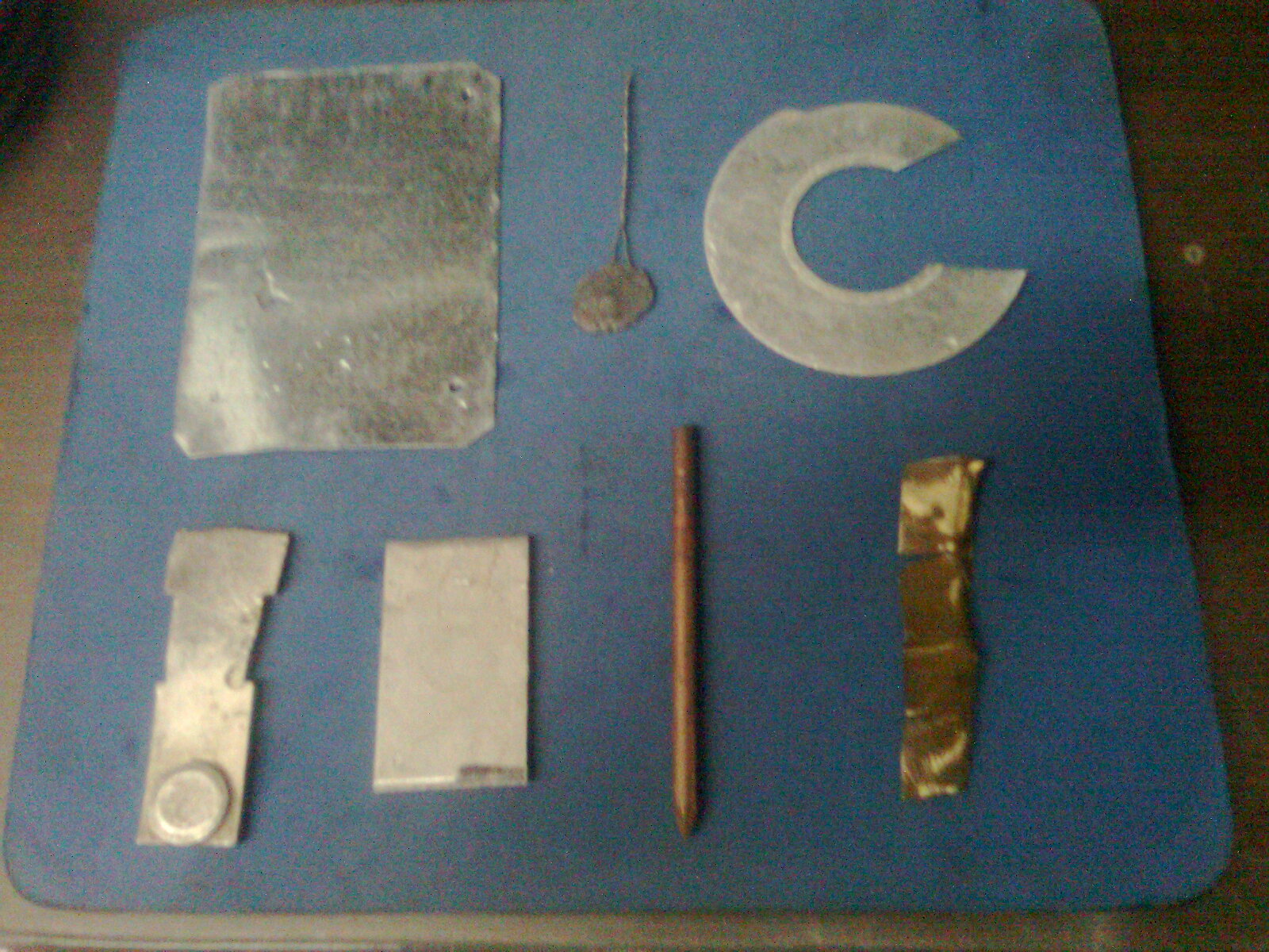 Ну что же ... Пока Вадимович тренерует аэрограф :co_ol: , готовится к встрече на Браславах :ko_re:sha: :dr_ink: и " шукае надхненне " для создания вертушек-гальванопар решил я проработать более тщательно теоретически-практическую часть изготовления этих самых вертушек . znaika Ещё разок перечитав статью, на которую ранее давал ссылочку , понял что написал её теоретик а не практик ( есть ошибки которые приведут к фиаско если слепо следовать тем выкладкам :-( ) . Посему решил провести небольшие исследования самостоятельно ( на работе сегодня выкроил немного времени :-): ). Итак... собрал несколько образцов металлов и сплавов ( алюминий , медь ,свинец ,серебро , латунь , нержавейка и оцинковка )