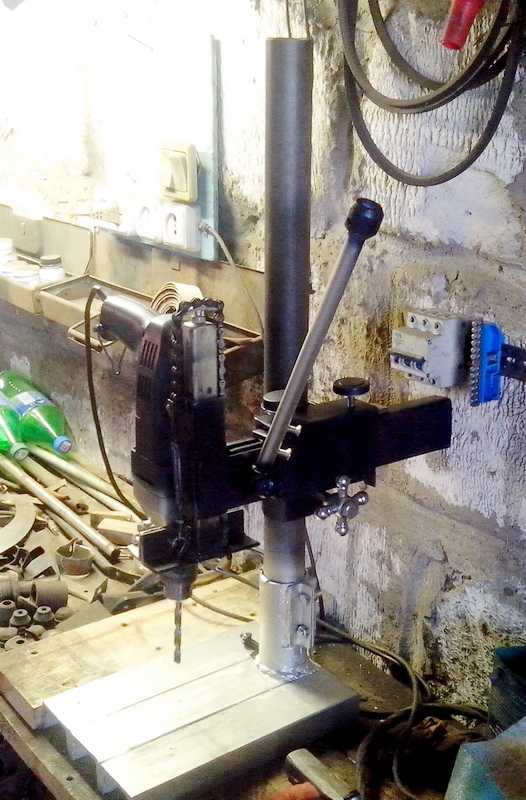 За неделю сделал вот такую стойку для дрели, типа универсального сверлильного станка...