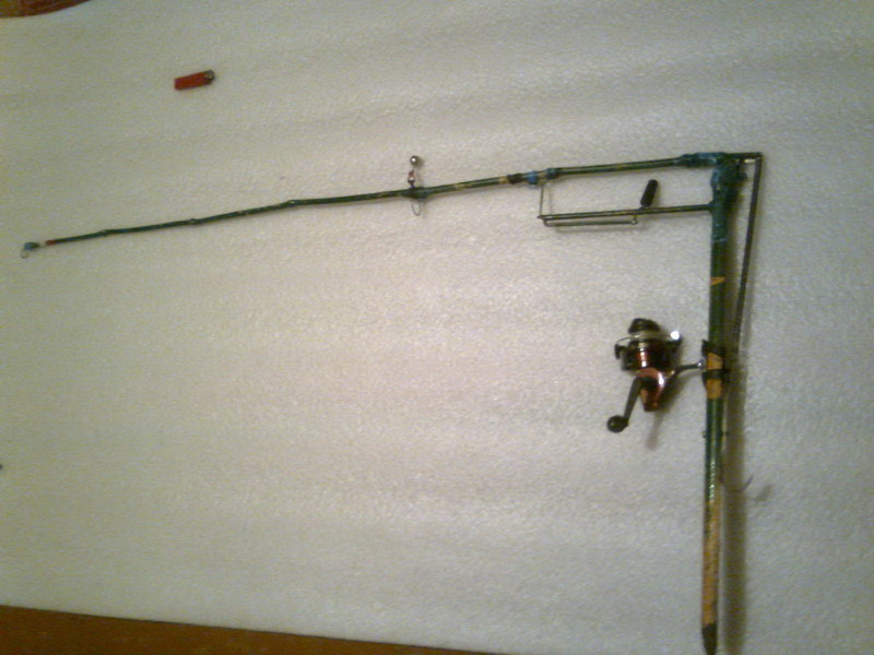 После подсечки леска высвобождается, потом работает пружина и фрикцион катушки, так что пока не выматает леску никуда не денется. Самая маленькая попавшаяся рыбка 10 см. бычок. Удилища из старых бомбуковых удочек, пружины из старых велосипедных сёдел.