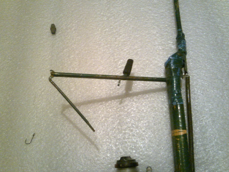 Спусковой механизм состоит из прутка 8мм. в котором с одной стороны пропил 10х3 а с другой резьба м8. В пропил вставляется крючок из проволоки 3.5-4 мм. которую нужно загнуть на конце небольшой буквой S и слегка приплющить молотком чтобы влезла в ПАЗ 10х3. Просверлить всборе и вставить заклепку (из оконного гвоздика или чтото не очень толстое 1.5-2 мм) чтобы крючок мог поворачиватся. Перед расклепыванием заклепки снять фаски в отверстиях т.к заклепку потом придется обработать заподлицо с диаметром 8 чтобы не цеплялась и не резалась случайно попавшая леска. Я обычно еще пытаюсь заложить между склепываевыми деталями кусочки сухой газеты, потом все нужно намочить и разработать чтобы выдавилась газета, шарнир получается подвижный. На нужном расстоянии (чем оно больше тем мягче спуск) сверлим отверстие и крепим вокруг д8 U образную полоску металла загибом вниз. До загиба примерно 15 мм, на верхних концах полоски фиксируем кусок плотной резины с прорезями для зажима лески. Полоска также должна легко поворачиваться на заклепке. Если все получилось правильно хвостовик крючка должен входить в U образный загиб полоски при ее наклоне. На конец прутка д8 накручиваем гайку и вставляем в рейку основание, затягиваем сзади второй гайкой. К удилищу напротив крючка подвешиваем через петельку полоску с отверстием. Отверстием она будет одеватся на крючок, который подогнать после сборки по месту. Удилище желательно из бамбука, он легкий и прочный, все остальное при подсечках ломает или слишком тяжелое, пружины помощнее надо. Пружины помощнее, сильнее отдача и разбалтывание поворотного узла. К томуже леску может на узлах отстреливать от крючка. Кстати на крючки у колечка я наматываю немного обычной нитки, чтобы леска не упиралась в срез загиба колечка а в буфер из нитки. Амортизатор так сказать. Стопор для грузика делаю из ниппельной резинки 10мм длиной просунув в нее по кругу леску, тогда если попадет че крупное леска просто мнет резинку и вытягивается в прямую линию. В последний сезон ставил поводки из плетёнки, лещ ловился намного лучше, но и путалась снасть тоже чаще...