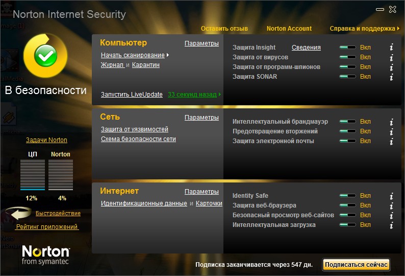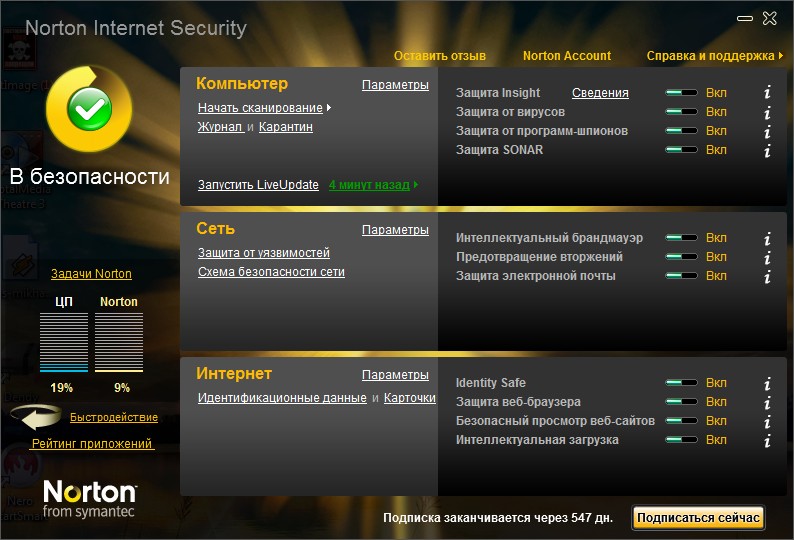 Я три года назад перепробывал все антивирусники и выбрал самый оптимальный Norton Internet Security2010 и когда лицензия кончиться жду не дождусь работает три года :co_ol: