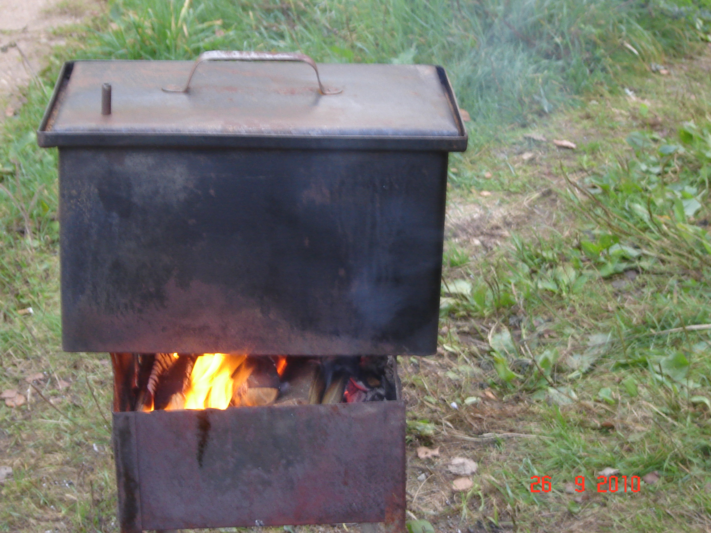 dima.albert писал(а):тоже пробовал разные конструкции- прижилась самая простая- обычный нержавеющий ящик с крышкой, на дно опилки потом поддончик для ловли жира,а сверху решетка, все точно так как на предыдущей фотографии, вариантов разогрева масса от двух кирпичей с костерком между ними до мангала и просто газовой плитки- плитки по мощьности хватает в притык потому сверху ящик в таком варианте просто утепляю войлоком. в этом году буду осуществлять свою давнишнюю мечту, на огороде строю беседку,где собираюсь ставить очаг- типа там шашлыки пожарить,так вот собираюсь его продлить -опустить дымоход в низ а на выходе устроить холодную камеру коптильную, возможно придется еще и вентилятор прилаживать-по месту конструкцию скоректирую возможно для копчения буду делать спец топку и размещать у самой земли, а потом длинным каналом вести к ящику- отпишусь потом чего получится .