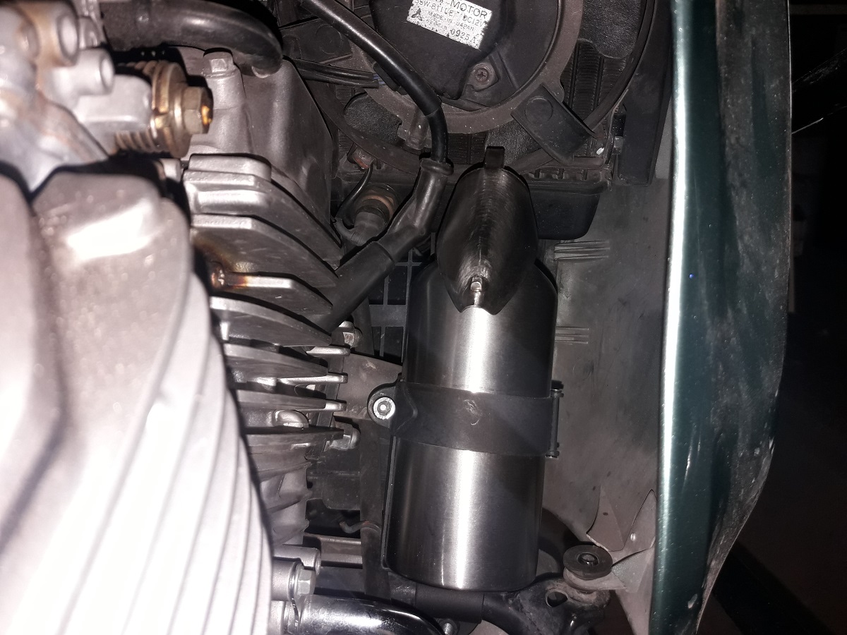 Сначала изготовив крепление встроил под щитки в мотоцикл бутылку из нержавейки на 350 гр., с раскладной воронкой (тоже из нержавейки) на пробке. Для запасного масла движка. Висит и как гриццо "есть не просит". Может когда нить где нить в дебрях и пригодится. Да и так запас всегда под рукой неплохо. :uch_tiv: