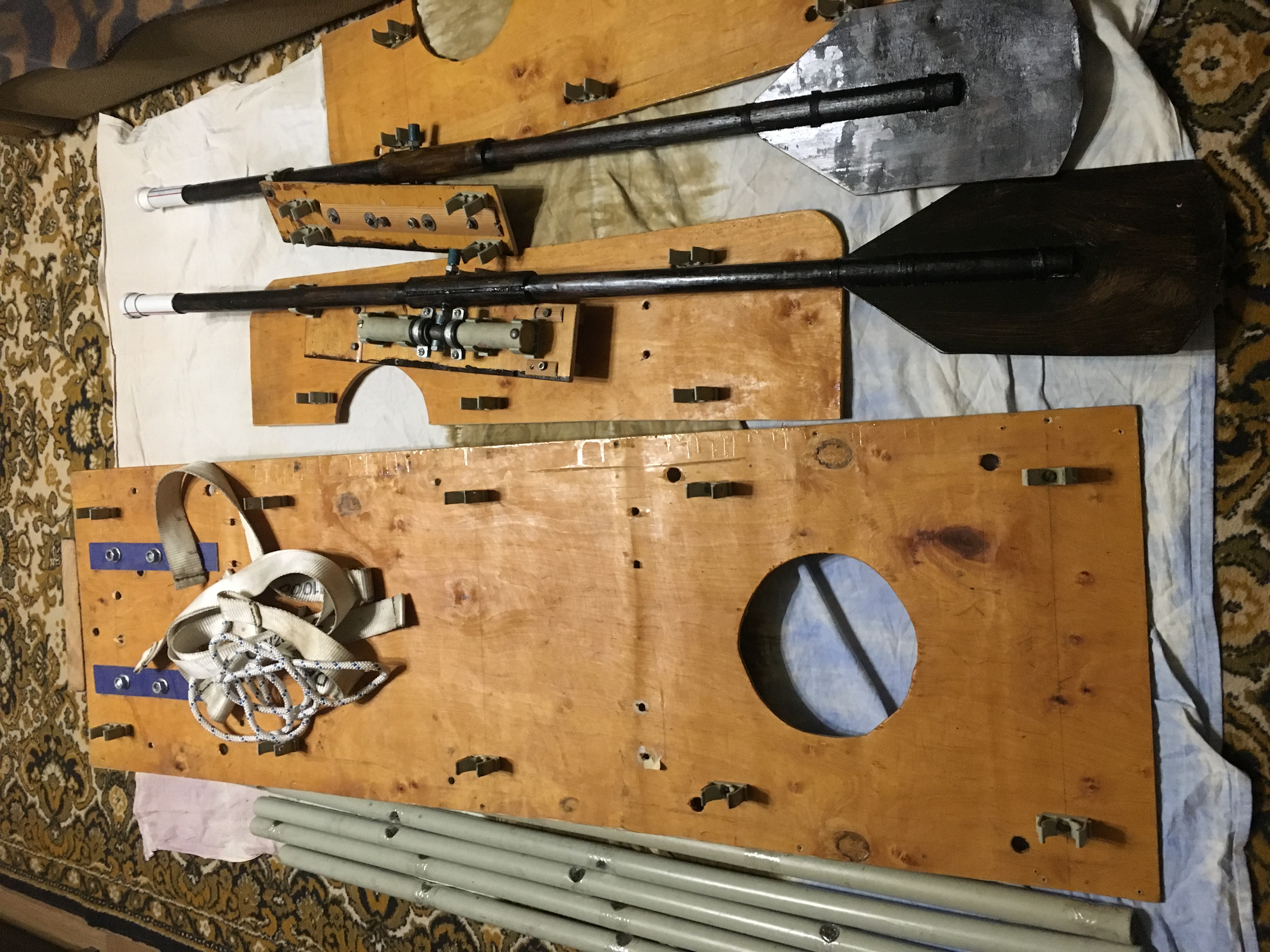Почьти закончил новый насос ( 100 на 650 ) . Предыдущий был 100 на450 . Новая клапансистема . Вес на 300 гр меньше . Прогресс :-) Что - -то попёрло меня по насосам . :ps_ih: Жена уехала с дочерью в Ит . Один дома . :bra_vo: Лизнул винца 2013 года (довоенного ) . И придумал . В магазе продают сантех трубы 100 на 3500 . Может сделать заявочку в Гинеса . Самый большой ручной насос для накачки плотов , лодок , шариков , презер - в и пр ... Ведь победю наверняка :du_ma_et: :men: Аж самому смешно стало , а китаёзы не дремлют :de_vil: ( и жена ) . Да , вс помнил . Боковые плиты на плоту , могут смещаться , как и уключинные блоки . Вперёд , назад . .Расстояние между трубами ( пластиковыми , поперечными ) , везде одинаковое . Ну вроде всё сказал . :uch_tiv: