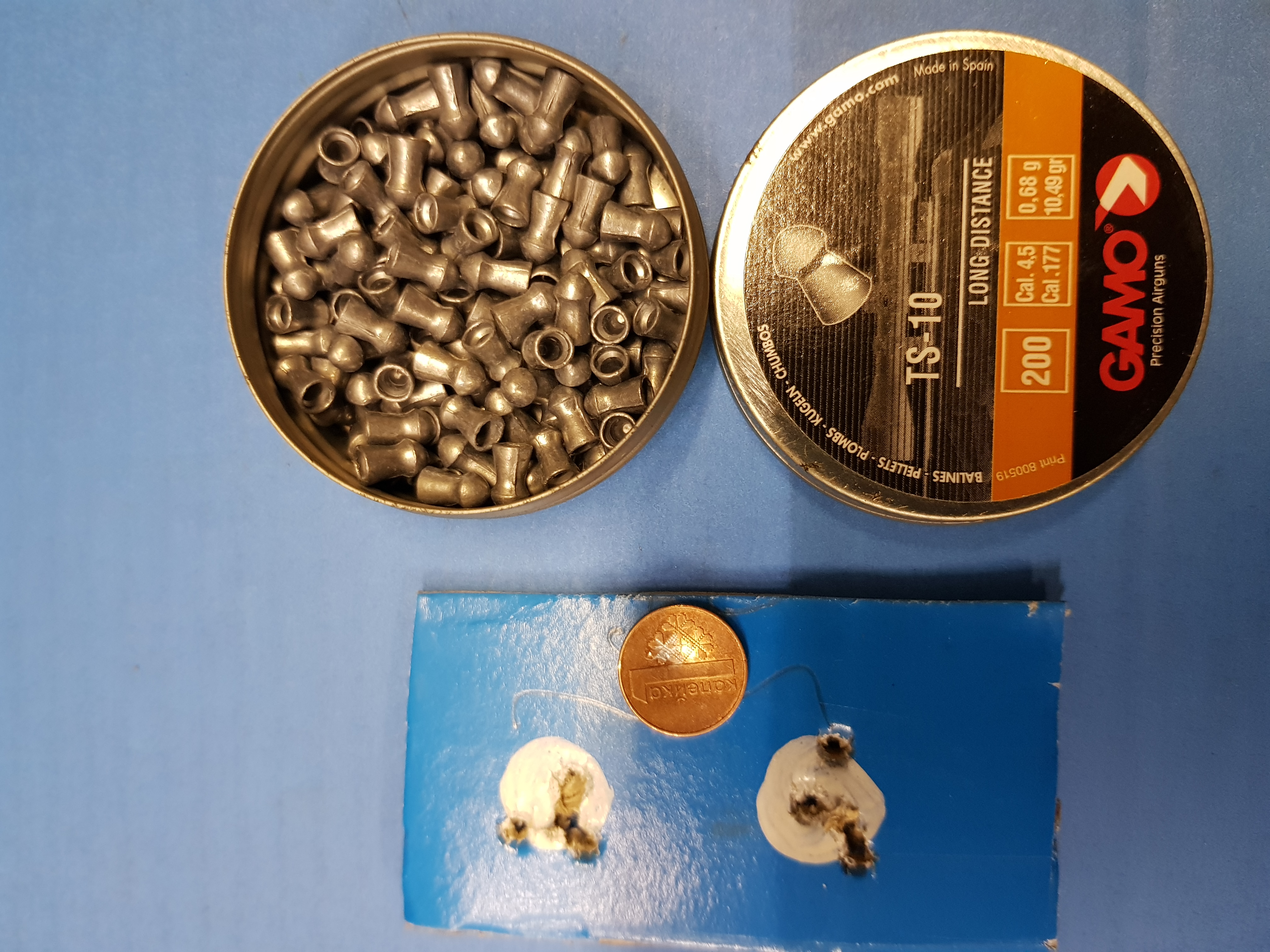 От нечего делать сегодня в гараже решил перепробовать пули для своего gamo cfr из того что было в наличии. Фотки ниже. Скажу сразу что отстрел был с 6и метров (больше гараж не позволяет), прицел открытый. Размер мишени 1 копейка. Везде серия по 5 выстрелов.