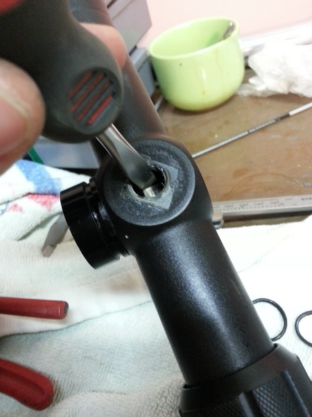 выкрутить заглушку барабана отстройки параллакса можно пальцами, но если не откручивается - портим ее плоскогубцами, выхода нет. У меня открутилась пальцами.