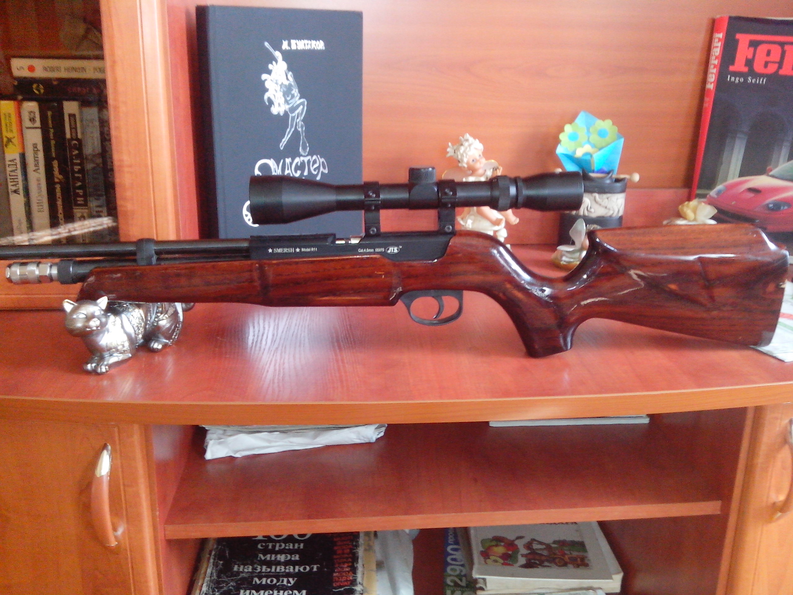 И так в наличии морилка и автомобильный лак (только выбирать следует хороший, а не тот, что в баллончиках, благо лак, компрессор и другие приблуды есть - на досуге малюю людям машины). Морилку дерево впитывало неохотно пришлось ложить слоев шесть, а может больше, кто считал. Для новичков могу сказать желаемый цвет дерева виден при мариновании когда ложе мокрое, в дальнейшем после лака он темнеет еще на пару тонов, не перестарайтесь как я (как будет вести себя после масла не знаю). При мариновании выполз сюрприз в виде поднятия ворса дерева и проявления глубоких рисок после грубой наждачки (хотя шкурил на совесть) не надо думать, что в дальнейшем все можно будет закрыть лаком, не получится - лак только проявит все косяки еще лучше, так что промежуточной шлифовкой лучше не пренебрегать иначе конечный результат не обрадует. После всех тонировок дошло дело до лака. В наличии у меня был бейсик от РМ, это достаточно твердый лак и ложится очень хорошо если не перестараться, то без подтеков. При укладке лака на буратину многих может ждать разочарование. Объясню, проникающая способность лака, т.е. его впитываемость в несколько раз больше чем у морилки и масел (растворители и химия блин) поэтому многих может ожидать сюрприз в виде глубоких провалов и рисок, которых не было видно при полировке (но на солнце, да под свежим лаком просто охренеть)