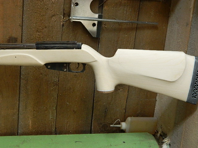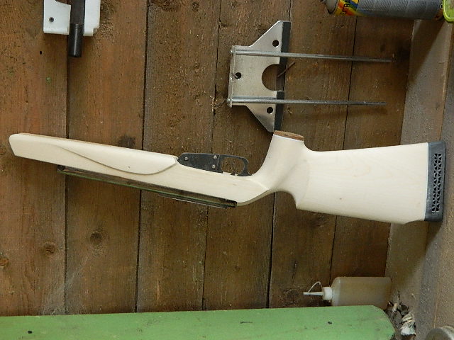 вижу два варианта: первый- допустим нужно сделать затыльник на прикладе. когда приклад ещё в черновом грубом варианте торцуем заднюю часть, прикладываем кусок пластика и кусок будущего затыльника, допустим из другой породы дерева или того же, но в последствии пропитанного другим оттенком. берём этот сэндвич на пару саморезов и обрабатываем всё вместе до нужной формы.