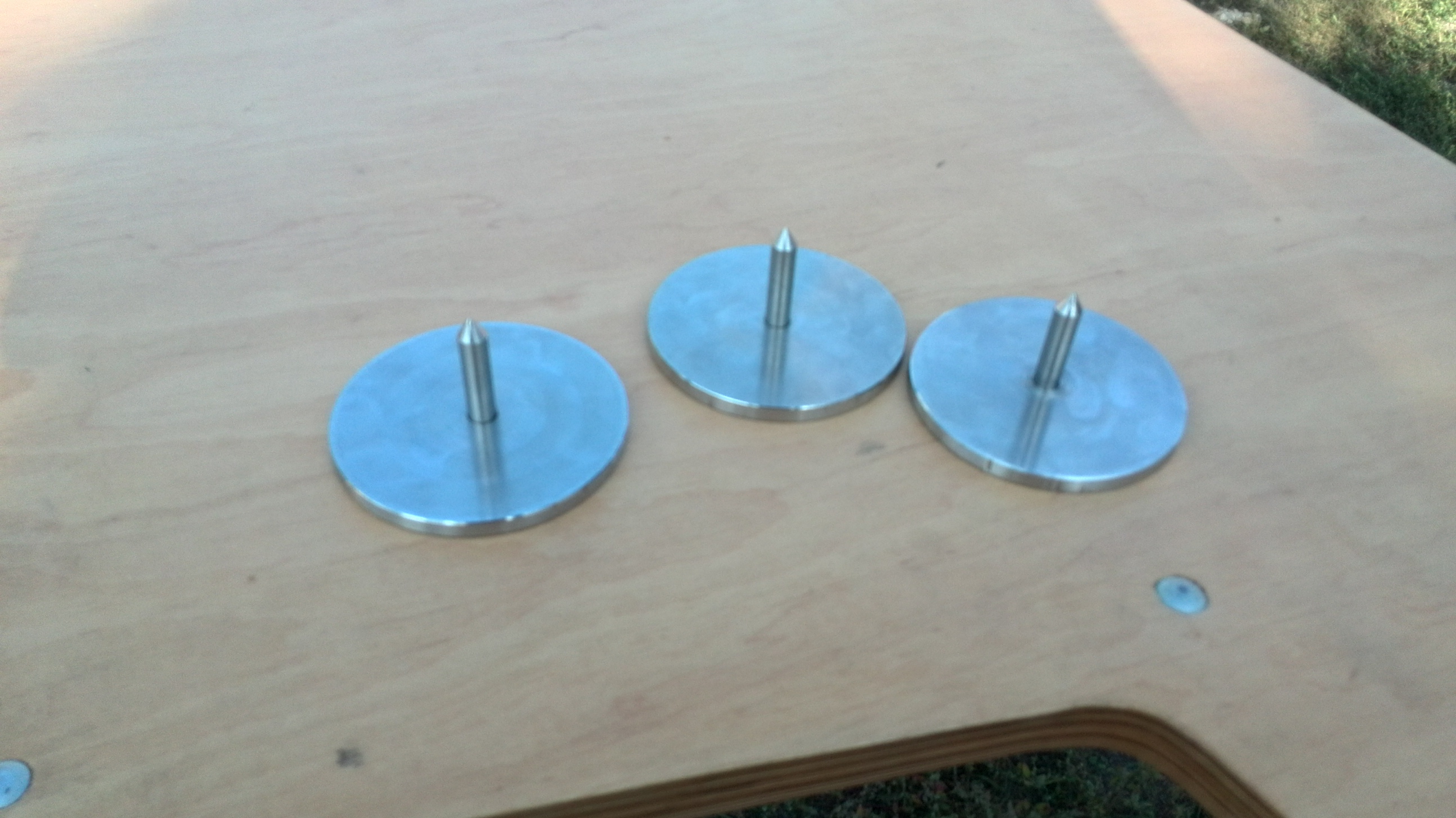 Пятаки и зглушки в трубы как мне кажется нужны для установки в помещении на полу, а на улице возможность заглубить ноги в землю - это только плюс.