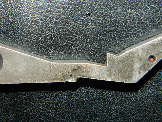 Ступенька вышла хорошо. Но можно чуть больше. И если спуск лишком мягкий то можно шептало подогнать. Приблизительно намечаешь на заднике место где происходит зацеп шептала о ступеньку. Дастаешь потроха с задника и вершлишь сквозное. Затем собираешь и смотришь как у тебя сопрягаются поверхности шептала и ступеньки. Где нужно подтачиваешь