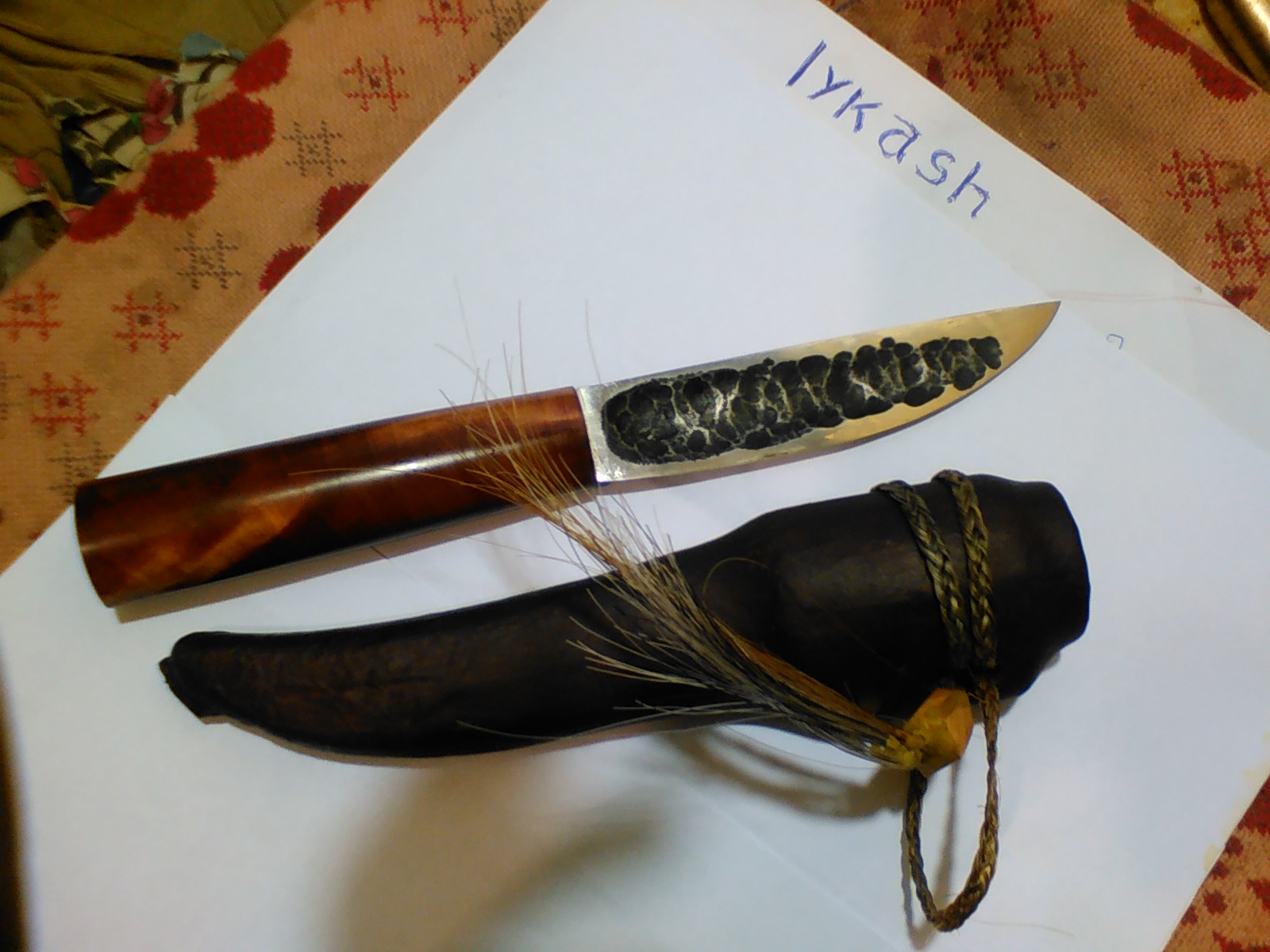 ещё якут,сталь65г,клин 145х29х4,термичка58ед,рукоять сувель берёзы!28мм.Ножны вкладыш из сосны обтянут бычьим хвостом,подвес конский волос.200руб.Сейчас этот форум просматривают: Bing [Bot] и гости: 12