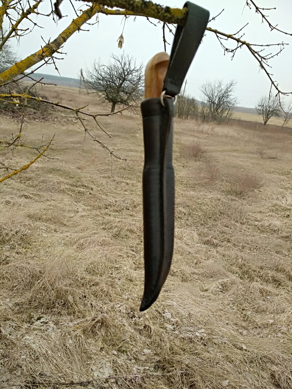 Ножны: кожа комб. дубления, пропитка от влаги, сосновый вкладыш.