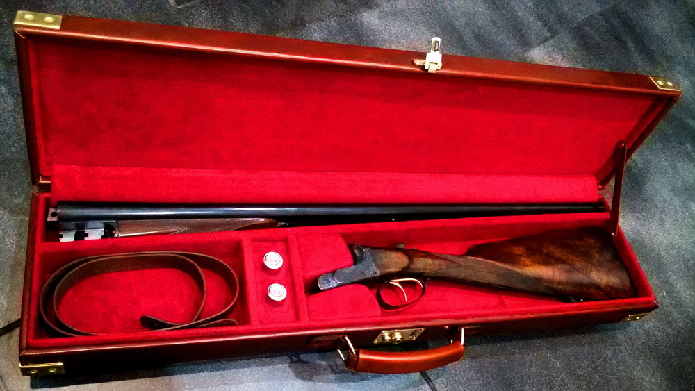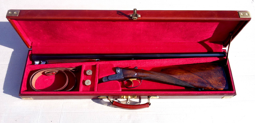 Изготовлено в 1910 г. Заново клеймено в 1920-1922 гг. Каллибр 12х70. Стволы зеркальные с каналами 18,5 мм. Длинна 750 мм. Сверлены на конус. Правый цилиндр, левый чок. Патронники тугие 70 мм. Вес 3250 гр. Цветная калка 100%. Внутренние механизмы покрыты золотом высшей пробы. Красивый дорогой орех. Затыльник из рога буйвола. Ружье в добротном кожаном кейсе. Родной быстросъемный кожаный погон и латунные фальшпатроны в комплекте.
