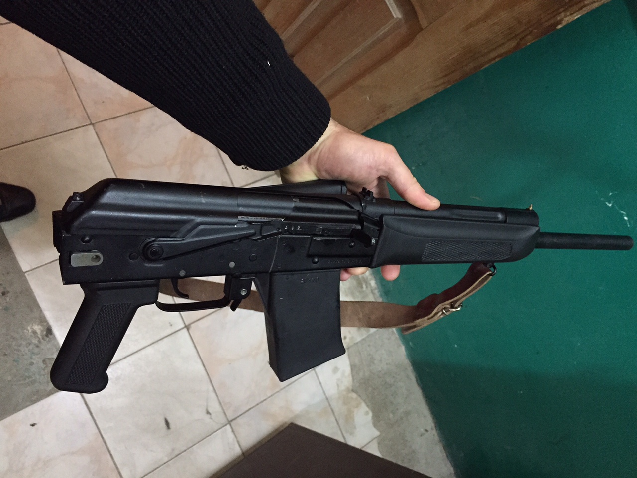 Сайга-20К гладкое охотничье самозарядное ружье,отличается укороченным стволом, рукояткой ведения огня, складывающимся прикладом и устройством блокировки ударно-спускового механизма