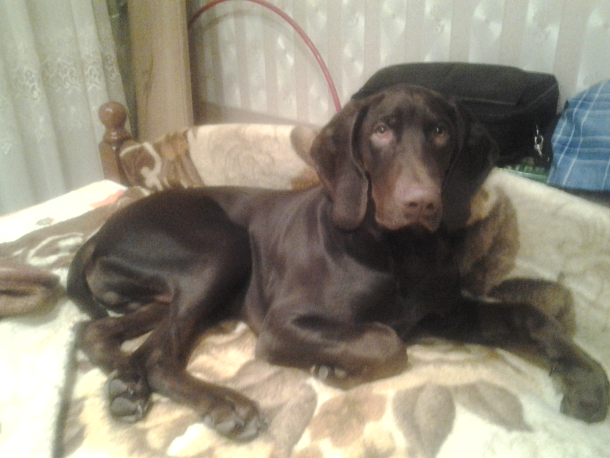 немецкий курцхаар, кобель, кофейный, привит (вет. паспорт), родословная, 2 сезона охоты по пушнине (с 01.01.2013), один сезон по утке и кабану, отличный помощник, стойка по птице, зайцу, кабану!!!! стойки отличаются, доклад о нахождении битой или раненной дичи лаем, подает с воды, умница, удивительно обучаемый, готовый помощник!!!! д.р.06.08.2012 (1.5 года). прекрасное отношение к детям, в квартире не гадит и не вредительствует, терпелив. причина продажи... появление аллергии у ребенка