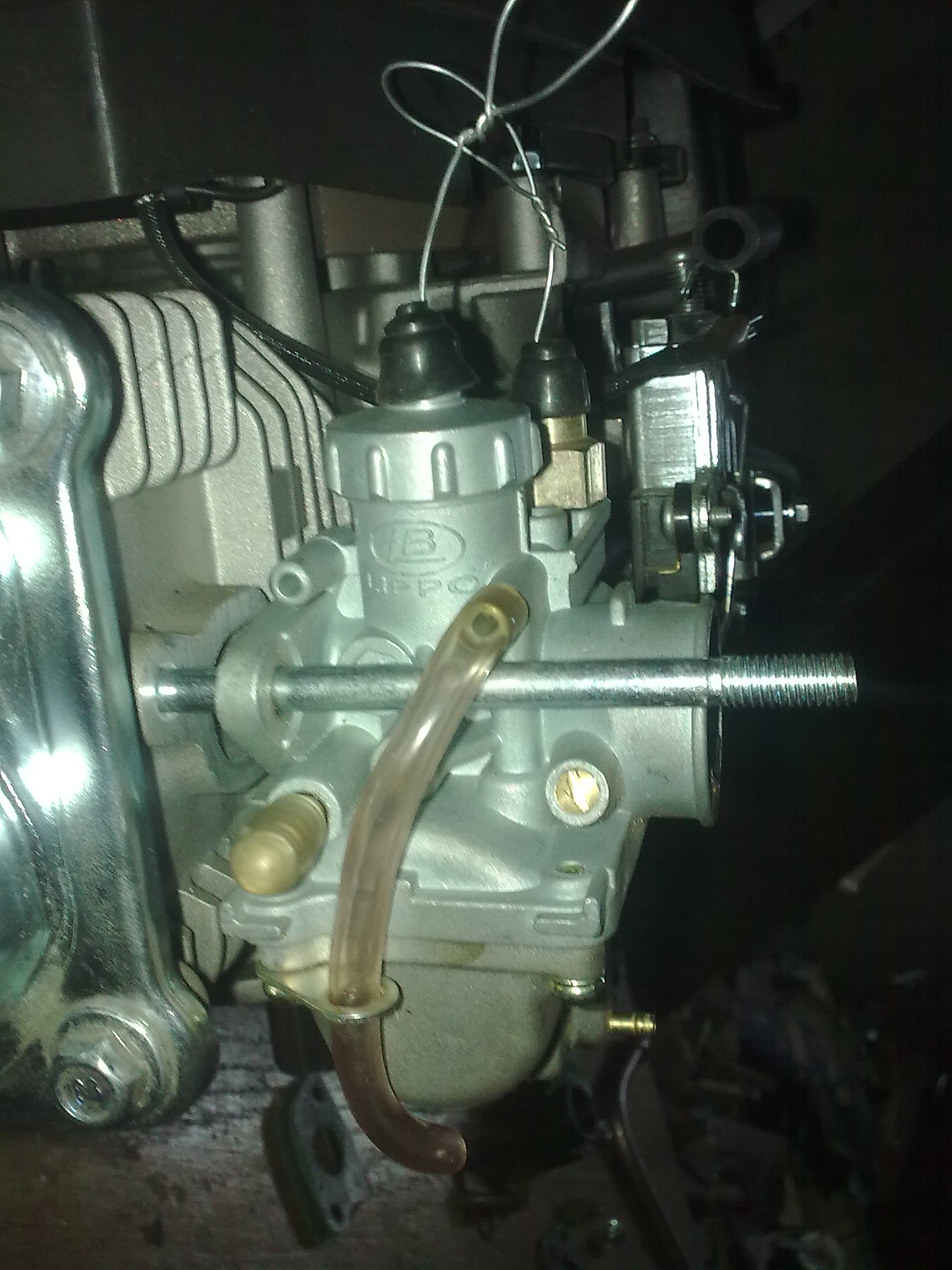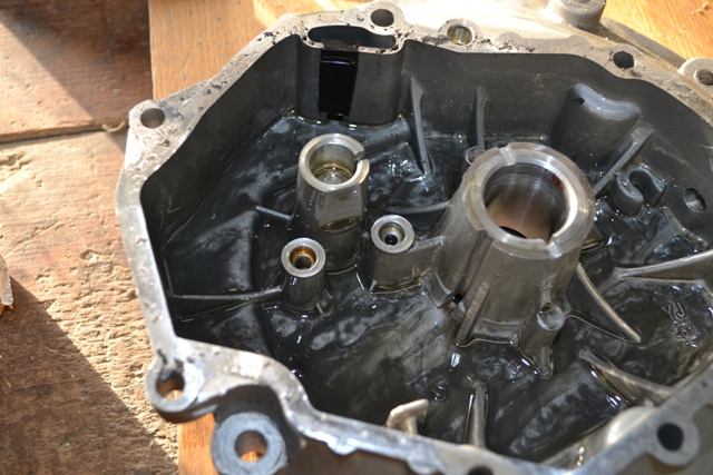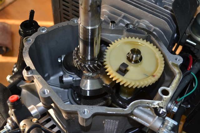 Удалил грузики, оси на которых они вращались,пластиковый толкатель рычага, сам рычаг. Дырку заглушил болтом,пока его не обрезал, может что нибудь придется закрепить на нем. Прокладка порвалась, использовал автогерметик. Еще выточил две шайбочки под пружины клапанов. Собрал, пока не заводил. Еще начал красить ногу, пока прогрунтовал. Фууу...вроде все