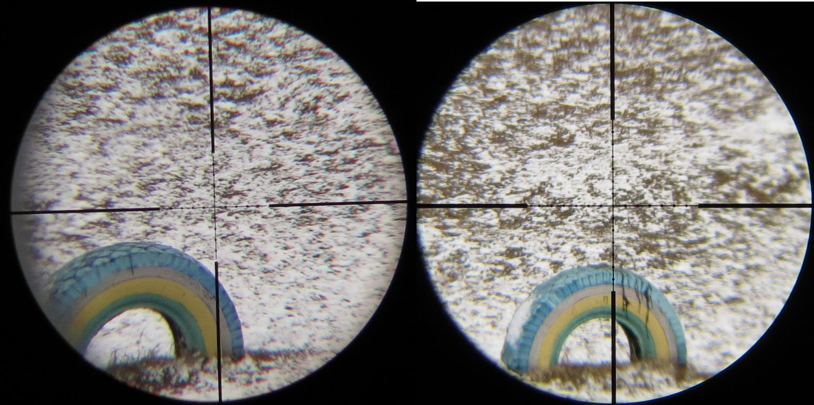 И в конце сравнение с сеткой центр поинта, которую я считаю достаточно тонкой. Но у зоси она оказалась еще тоньше. Расстояние на фото до колеса примерно 60 метров на 10х. Думаю, не надо говорить, что в реальности все четко и ярко :-):