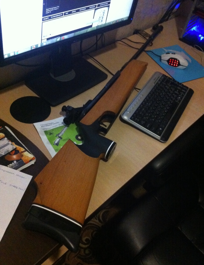 ну можно и так назвать-но этот утяжелитель на всю длину ствола,он с небольшим усилием прокручивается,а сам ствол,если смотреть на фаску неподвижный.Баланс там и так сильно к стволу идёт,а если грузики в приклад вставлять))то она и так не лёгкая) Сейчас не спешно делаю сошки -точнее из куска дюраля выпиливаю базу-которую можно вставить в еврошину.В планах прикупить достойную оптику с хорошим увеличением.чужой писал(а):kevlarBY