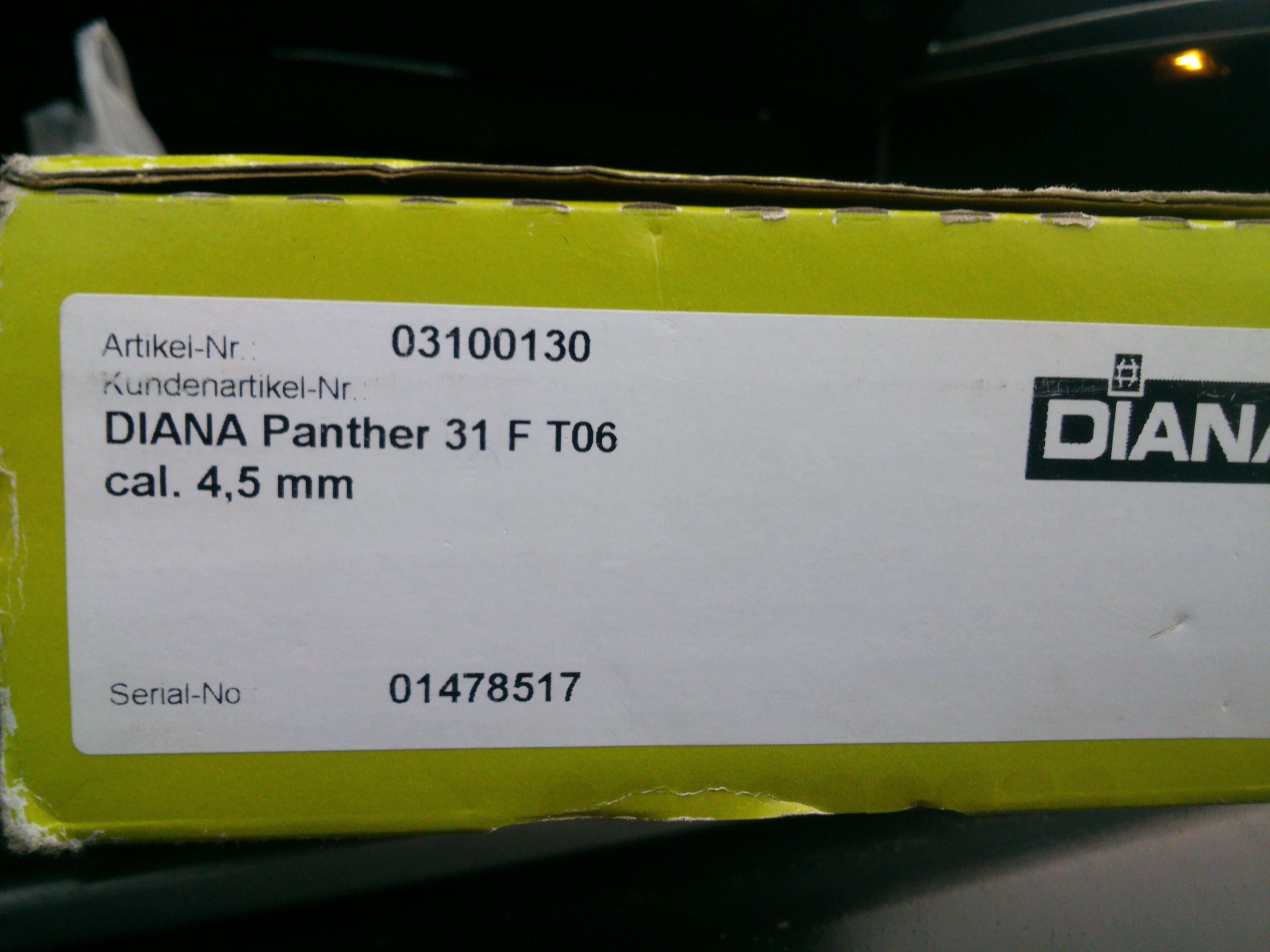 вот решил и этот винт продать. жалею конечно. ну, да ладно.(денюжки нужны). винтовка "Diana 31 Panther" куплена в прошлом году, небольшой настрел, разбиралось только один раз. + прицел (производство р.б.) хороший :co_ol: + кожаная щека, тоже :co_ol: + коробка, документы. цена; (я думаю гуманная) 4,5 ляма, или 450$ ,без торга т. 6734818