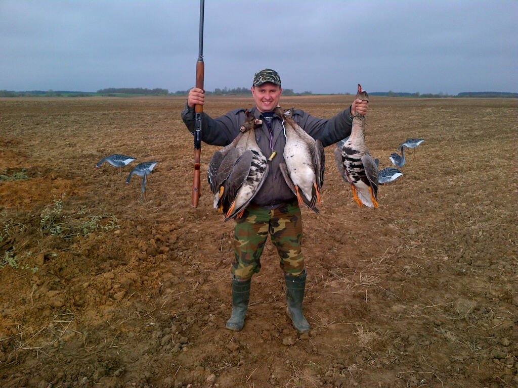Як доўга я чакаў свайго гуся. Быў адзін здабыты ў пачатку сезона. Але ж ён ачуняў, яшчэ жыве, і, вельмі добра сябе адчувае. І залічваць яго ўжо як бы і не хочацца. А гэты - усё, здабыты. Хай сабе і так. Без "правільнага" падманьвання, на вадзе. Але ж я нікому не перашкаджаў, не поўзаў на карачках па полю, не лупіў у паднябессе з "8.5". І з пункту гледжання Правіл, я нічога не парушыў (прафілі, манок, шалаш).