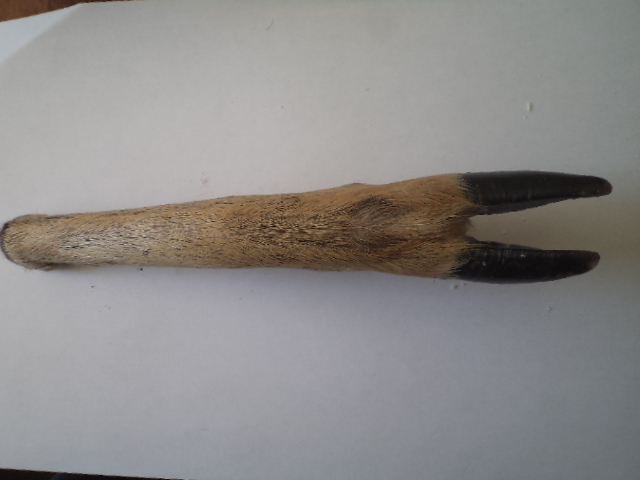 Я вообще делал так. Свежее копыто(см 25 - с запасом) помещал в воду с очень соленым раствором с добавлением медного купороса, где-то на ночь. Потом достаю, и привязываю его проволочкой в нескольких местах к ровной палке, чтоб во время сушки оно не сгибалось в суставе. Потом помещаю его в очень теплое место(заготавливаю их зимой - поэтому на печь) и сушу до полного высыхания. Кстати еще перед засолкой отрезаю пилкой ниже коленного сустава, чтоб житкость попала в костномозговой канал. В процессе сушки подушки копыт немного усохнутся и сморщатся но это не значительно. Поэтому не вижу смысла снимать щкуру полностью вместе с роговым покрытием - оно очень хорошо высыхает. У меня таким образом высушенные копыта уже второй год лежат и ниче не сыпятся и никто их не жроть.