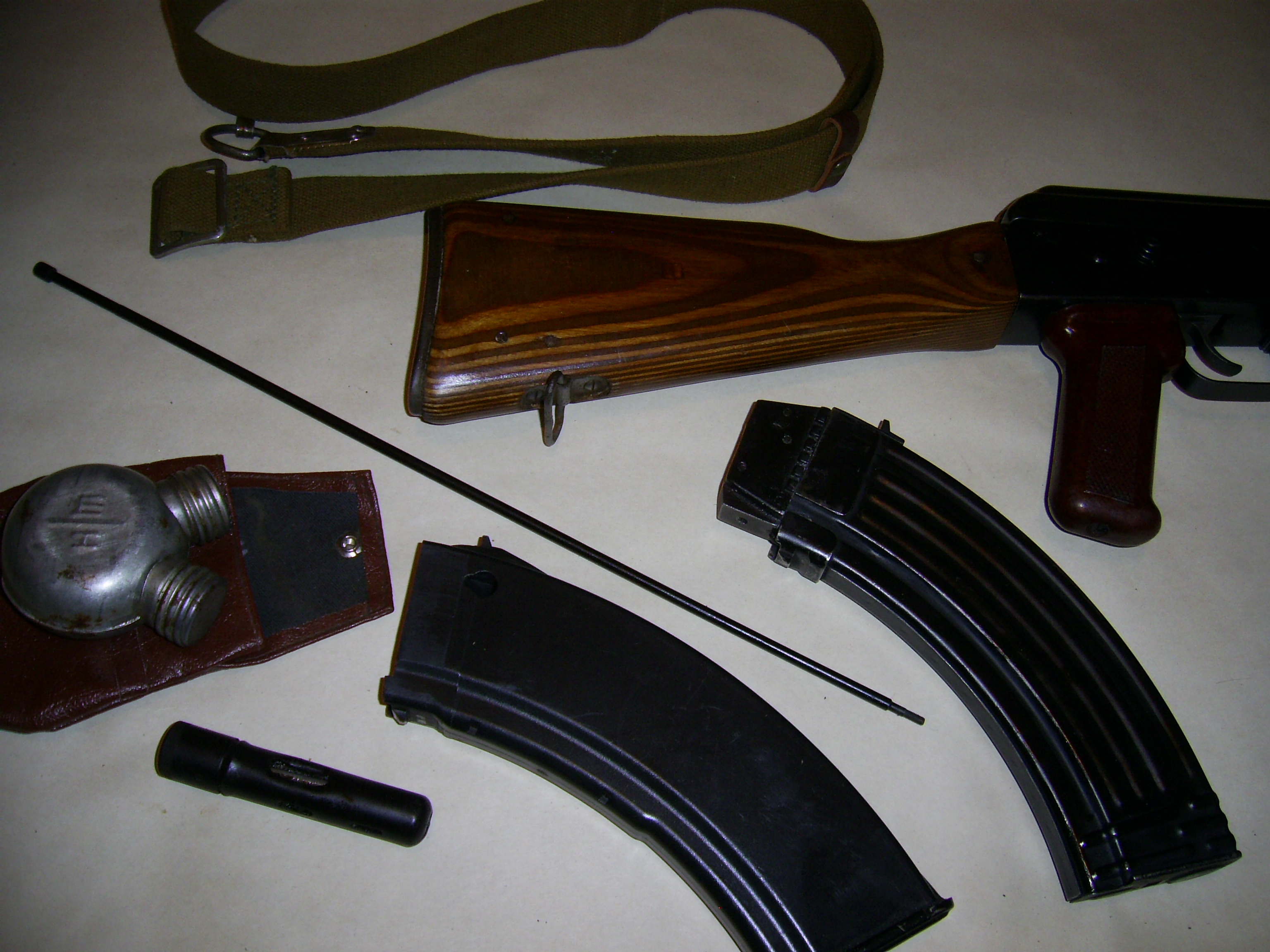 комплект: ремень АК оригинал, масленка два горла в чехле Ш/Н оригинал, пенал ак 7,62 оригинал, шомпол оригинал ак, корпус штатного магазина на подмену, 5 баллонов, шары