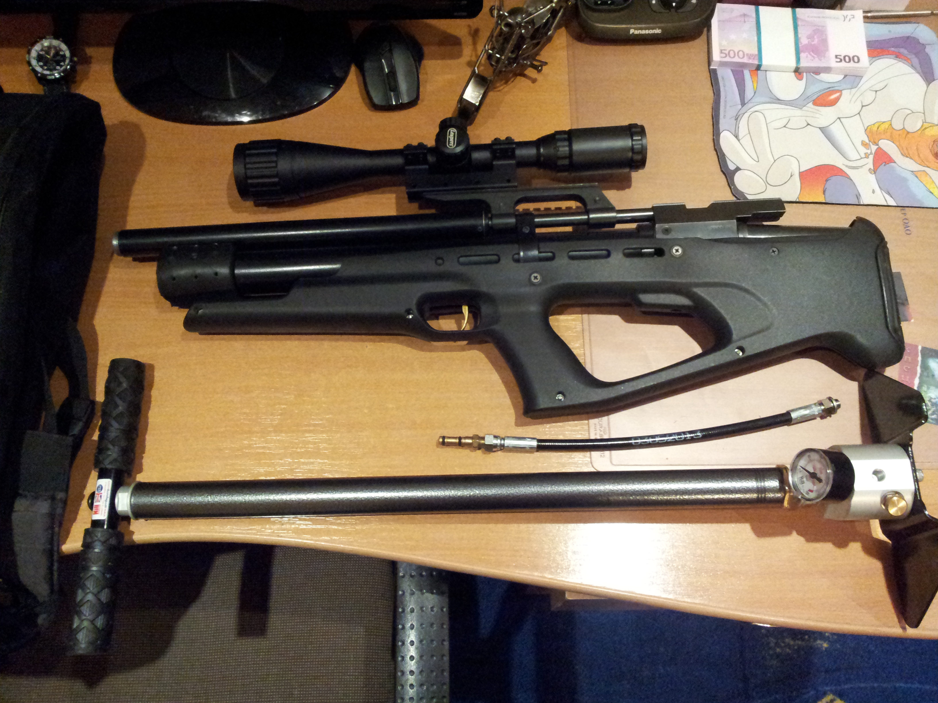 Собственно комплектик.Желеный КрюгероИЖ в Крокодиловой шкуре (булпап),Насос XILL,прицел Leapers 4x16-50 Mil-dot,чехол.