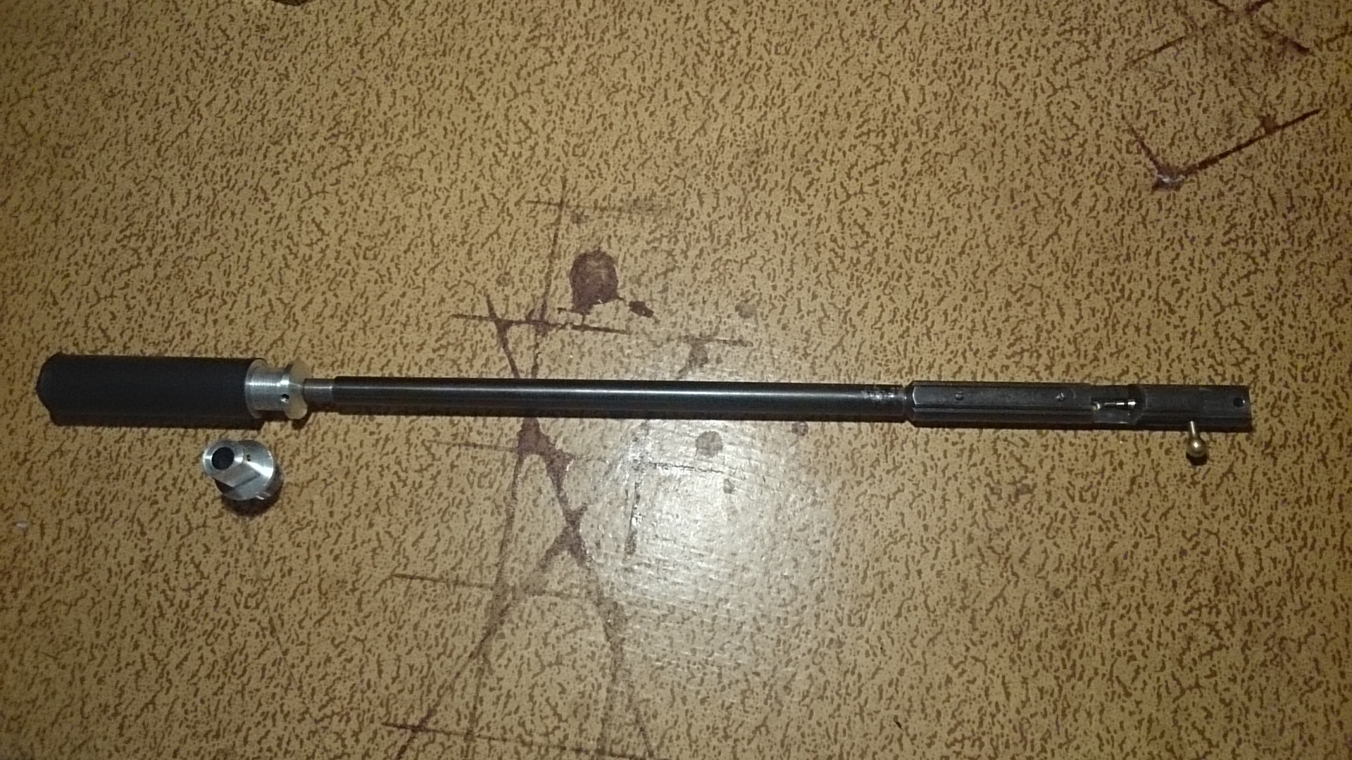 Стволик папа от QB, 38 см. Проточка под коробку, основной диаметр 15 мм, нижняя часть сточена вровень с коробкой, на конце резьба 12х1 ровная - 35