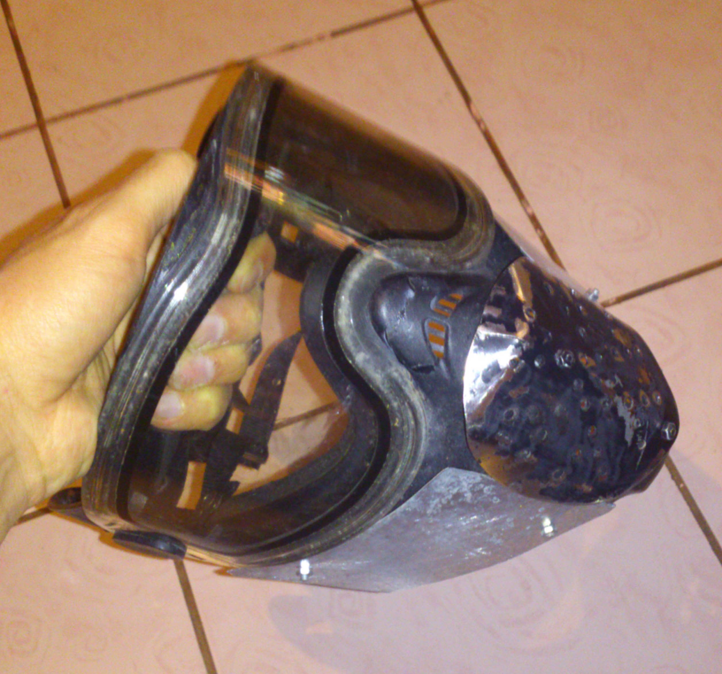 И да, забыл, есть еще вот таки шлЁм, ковер правда замучен тяжкой неволей и кулями, ремешки крепления требуют замены, зато пластик шлема ок. Держит под двести ббхой в упор, свинец тем более.