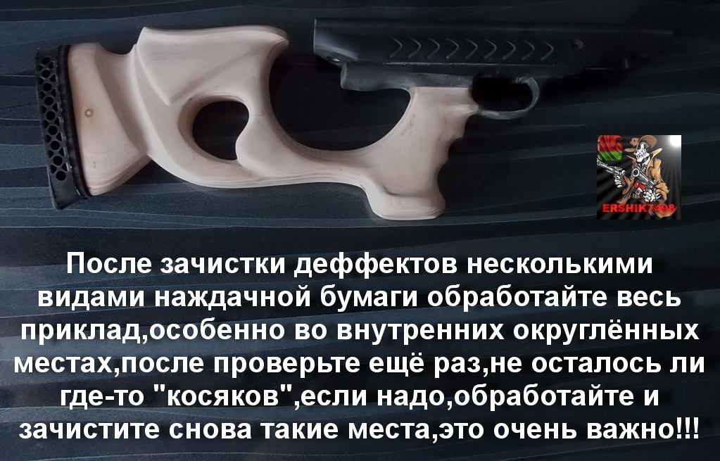 Подчистка приклада наждачкой разной зернистости