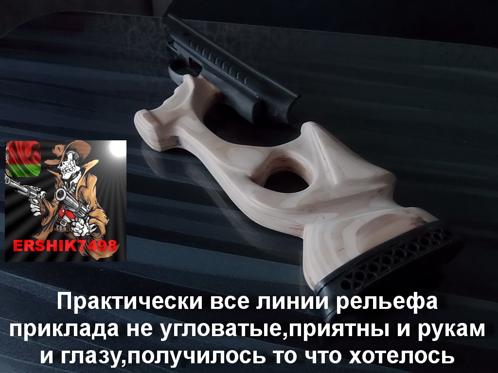 Приветствую!В этом обзоре хочу рассказать как изготовить шикарный приклад для указанной модели ППП пистолета.По бюджету данный проект очень не дорог,и Вы получите массу самых положительных эмоций при использовании Вашего пистолета с установленным прикладом.Уверяю,поможет!!! А сделать попытаемся вот такой приклад:Фото были сделаны в разное время суток,потому оттенки отличаются,но не столь важно это,верно?