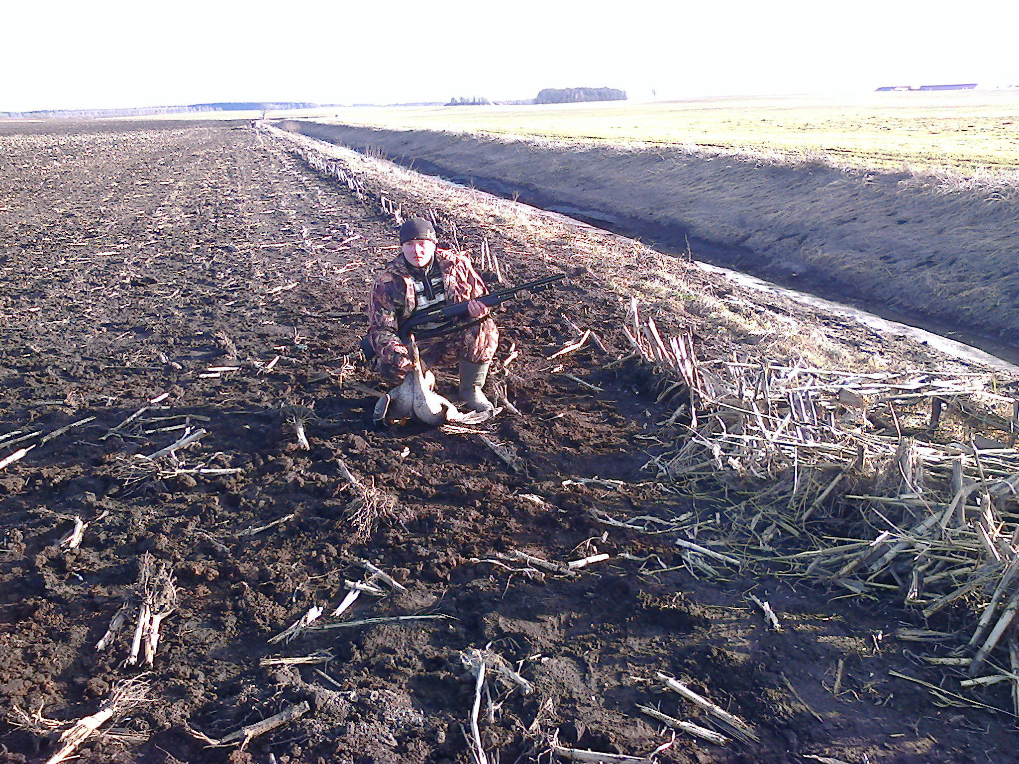 . Налет небольшой стайки- дали сесть на воду..Сели в метрах 50-ти от нас. Но что же делать , гуся то добыть хочется..В общем подняли стайку и добыли одного белолобого беднягу. Адреналин шкалит, сердце выпрыгивает из груди, ноги в воде. ГУСЬ НАШ !!!!!!! Дальше прождали еще немного, но было ясно, что ластоногие решили спрятаться конкретно от нас и где- неизвестно...