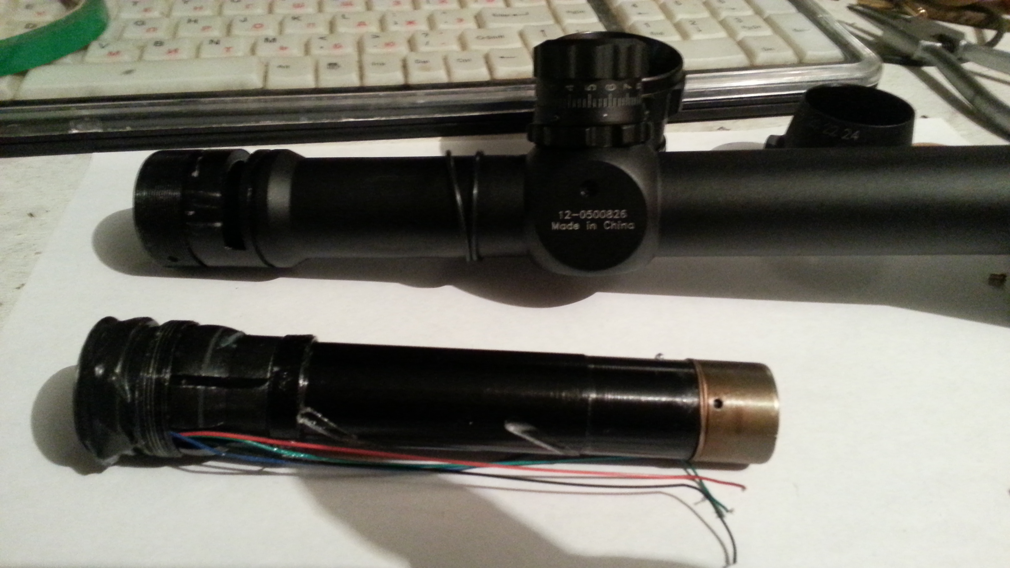 Все. Дальше все в обратном порядке собираем. Секрет с проводами прост - прилепите их к трубе тонкой полоской скотча, который уберете вытянув пинцетом через отверстие барабана подсветки.