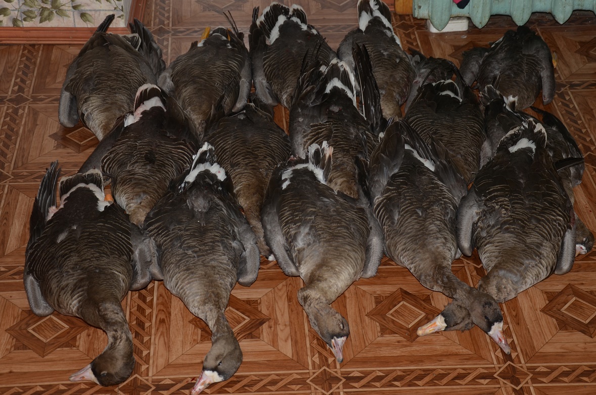 В воскресение добыли 12 белолобых гусей. (фото выложу позже)
