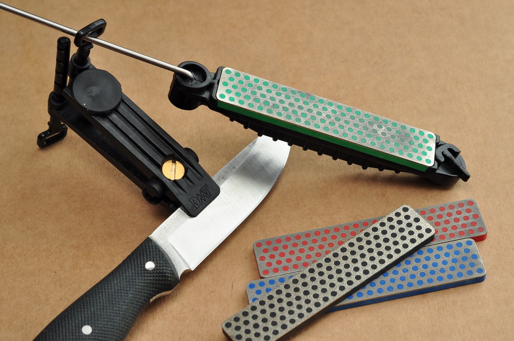 Пока доступен только такой вариант, правда те ножики которые бывает идут на продажу затачиваю на своей самодельной приблуде. Принцип действия там как и у DMT только вместо брусков с алм. напылением у меня